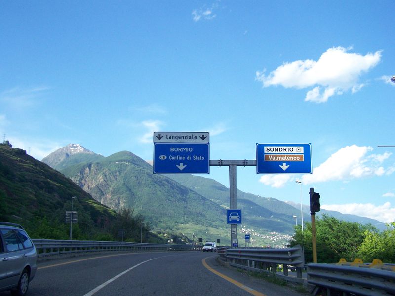 Wir fuhren vom Splügenpaß runter und auf der italienischen Landstraße über Sondrio nach Bormio. Der italienische Fahrstil hatte mich voll und ganz erfaßt. Kein Geschleiche, kein unnötiges Gebremse, kein Oberlehrerturm, einfach fahren so schnell wie es die Situation erlaubt, hin und wieder überholen (und zwar wenn frei ist, nicht wenn es gerade kein Verbot gibt) und schnellere Fahrzeuge (also in den meisten Fällen Motorräder) passieren lassen. Schilder lesen kann man sich sparen, man wäre der einzige der das täte, und wenn man sie befolgen würde, würde man sich mit 30 km/h geringerer Durchschnittsgeschwindigkeit als der Rest bewegen. Die Menschen fahren miteinander, nicht gegeneinander. Immer wurden wir schon aus der Ferne per Lichthupe oder Handzeichen vor den Carabinieri gewarnt, die am Straßenrand standen und Verkehrskontrolle machten. (Selten vorkommende) Fehler anderer Verkehrsteilnehmer werden hier großzügig verziehen und die (Licht)hupe wird nicht als Beleidigung, sondern als Signal verstanden: „Ich bin da“, „Paß auf“, „Ich möchte überholen“. Nur hin und wieder störte ein planloser deutscher oder österreichischer Autofahrer, der das System noch nicht ganz begriffen hatte.