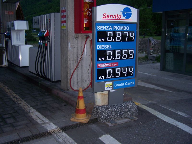 Gegen 20:00 Uhr erreichten wir Bormio und setzten via Passo di Foscagno nach Livigno über. Das ist ein verschlafenes italienisches Skiörtchen, das eine Besonderheit besitzt, die bei der Durchfahrt nur dem Autofahrer auffällt: Es werden keine Zölle und Steuern erhoben. Auf meiner ersten Alpentour 2008 fuhr ich, ohne etwas Böses zu ahnen, durch diesen Ort. Ich fragte mich, warum die italienische Zollstation schon vor dem Dorf lag und an der ersten Tankstelle traf mich der Schlag: Diesel 1,02 EUR /L. Das war damals sensationell günstig, da man in Deutschland über 1,50 EUR pro Liter bezahlte. Leider waren wir damals schon auf der Rückreise und konnten mangels Bargeld dort nicht tanken. Wenn man außerhalb der regulären Tankstellenöffnungszeiten nach Livigno fährt muß man sich nämlich mit Tankomaten zufrieden geben, die weder VISA- noch Maestro-Karten akzeptieren. Diesmal sollte dies aber geschehen. Ich steckte 60 Euro in den Tankomaten und konnte dafür etwas weniger als 90 Liter tanken. Ich ließ bei 281.905 km für 0,669 EUR /L den Tank voll und den Kanister gleich dazu, so viel wie von meinem Geld noch rein ging. Die Zapfsäule schaltete automatisch ab. Der 80-Liter-Tank aus einem 280CE, den Besold und ich dem Auto einen Monat zuvor verpaßten, hatte sich bewährt. Ich war mit einer Tankfüllung 934 km weit gekommen und es waren noch mehr als 4 Liter im Tank. In Livigno herrschen übrigens Festpreise. Es ist völlig egal, welche Tankstelle man anfährt. Man kann also ganz beruhigt die erstbeste nehmen und dann wieder zur Grenze zurückfahren, wenn man nicht mehr will als nur tanken. Über die Hälfte der Tankstellen sind sowieso „self-service“ und haben keinen Shop.