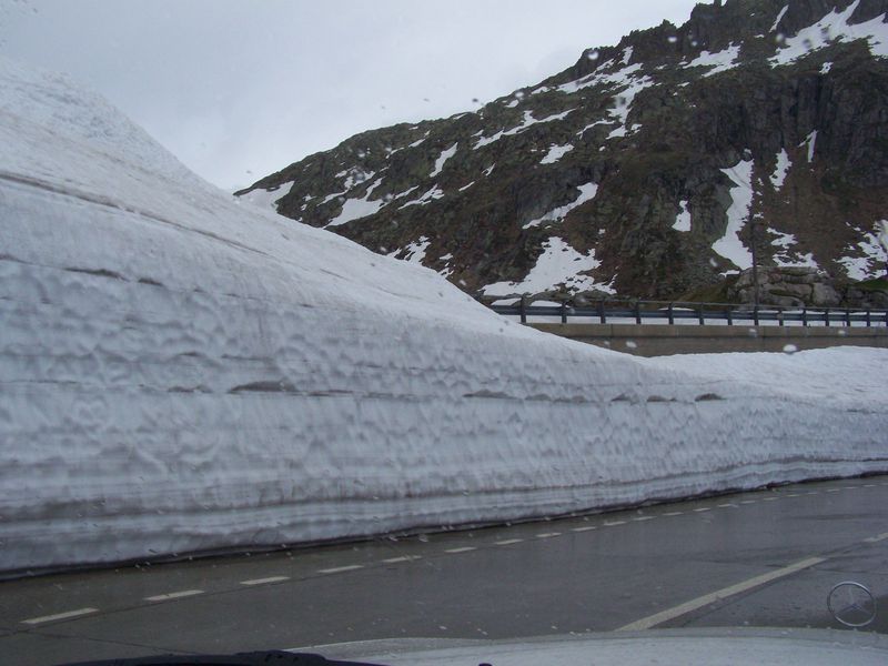 Den Gotthardpaß hatte der Daimler mit Leichtigkeit erklommen, wir machten Photos auf der Paßhöhe und verzichteten aufgrund exorbitanter Preise auf Aufkleber und Brotzeit.
