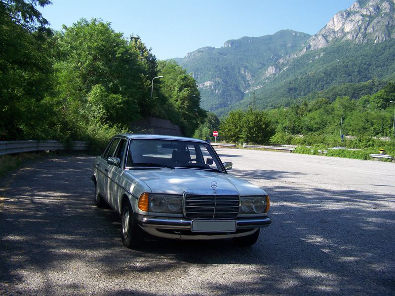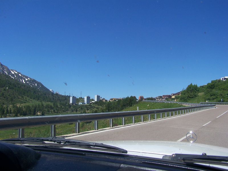 Aus unerfindlichen Gründen wollte mir in dieser Situation die Musterlösung für solche Probleme – Heizung volle Pulle auf – nicht einfallen und so beschlossen wir, das Paßfahren sein zu lassen. Ich hatte eine ungeheure Wut im Bauch, weil ich gerade wegen der Pässe hier hergefahren bin und gerade hier diese Elektrolüfter-Konstruktion versagen mußte. Eigentlich ist der Elektrolüfter ziemlich praktisch – er schaltet sich erst ein, wenn der Wagen eine zu hohe Temperatur erreicht hat und schaltet sich wieder aus, wenn die Temperatur wieder unter 90 Grad ist. Leider ist es damit wie bei aller Elektrik – sie versagt gerne zu den ungünstigsten Zeitpunkten. Nicht umsonst hat Mercedes damals einen Starrlüfter verbaut. Der läuft zwar immer mit und frißt Leistung, aber er geht höchstens kaputt wenn man ihn mutwillig zerstört. Wir beschlossen, zum Comer See zu fahren und auf dem Weg dorthin unser Glück noch mal am Forcola di Livigno zu versuchen, welcher weniger steil war. Wir wollten endlich einmal Livigno bei Tag und mit offenen Geschäften sehen.