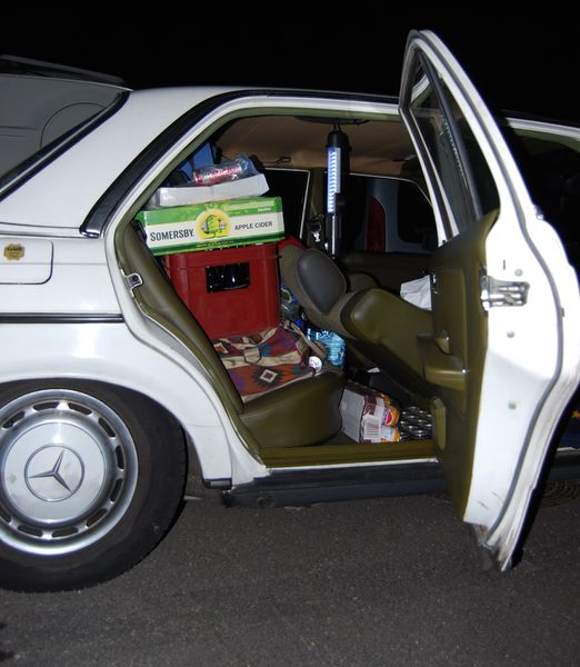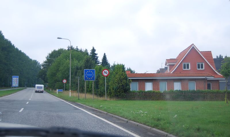 Wir verabschiedeten uns von den anderen; es wurde uns Glück, Spaß und immer eine Handbreit Sprit im Tank gewünscht. Anschließend ging es gegen 18 Uhr dann gemütlich los. Wir setzten uns Jönköping als loses Ziel. 646 km Wegstrecke zeigte das Navi an – wir fuhren über die beiden Brücken nach Schweden. An der deutsch-dänischen Grenze kauften wir noch Getränke ein, da es dort pfandfreie Dosen gab. Auch der letzte Kubikzentimeter Freiraum im Auto war nun zugestellt.