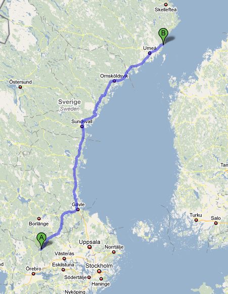 Heute stand Kilometerfressen auf dem Plan. Wir fuhren kurz nach zwölf vom Campingplatz ab und machten uns auf den Weg zur Hauptstraße, der E4. Dort angekommen ging es entlang der Küste nach Norden. Wir hielten nur zum Tanken (Der Dünomat kostete immer noch vom leckeren Pflanzenöl aus den Kanistern), Einkaufen und Essenfassen an. Bei Gävle kaufte ich an einer Tankstelle Wischwasserkonzentrat. Ich hatte Glück, daß sich die Fifty-Fifty-Chance zwischen Kühlerfrostschutz- und Wischwasserkonzentrat zu meinen Gunsten ausging. Auf das Klo konnte man hier übrigens auch gehen. Völlig selbstverständlich, auch ohne daß man überhaupt was gekauft hatte. Willkommen in der Zivilisation. Etwas später kaufte ich in einem ICA eine Flasche Autan um umgerechnet 8 oder 9 Euro, nachdem ich tags zuvor von Toby für verrückt erklärt wurde, ohne Autan im Gepäck nach Skandinavien gefahren zu sein. Ich wußte doch, irgendwas war da noch ...
