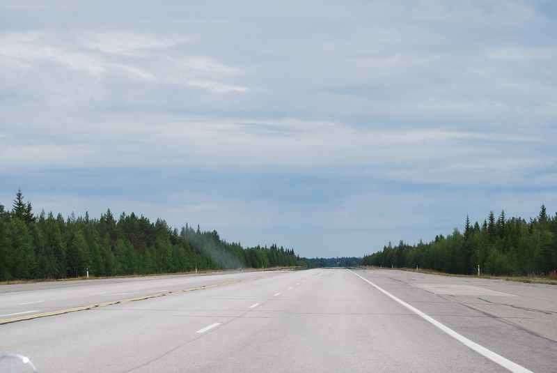 Die Runway, in deren Wendehammer wir übernachteten. Wenn Finnland mal gerade nicht Krieg führt, führt hier die Landstraße lang.