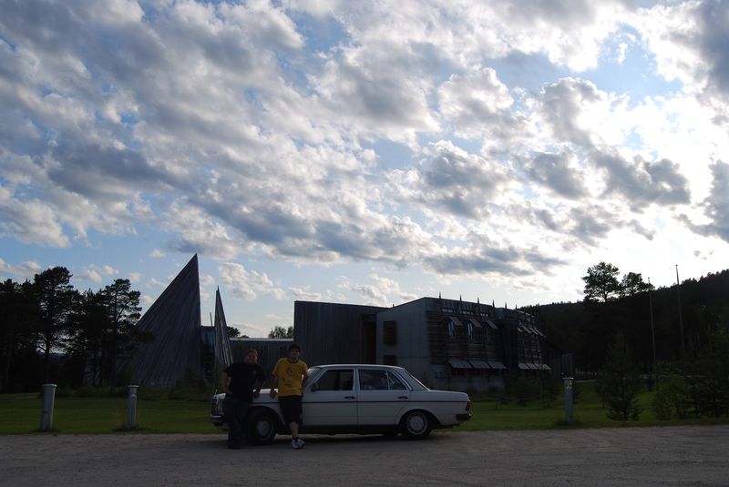 Am frühen Abend (bzw. späten Nachmittag) erreichten wir die norwegische Grenze, wo uns auch schon das erste Highlight des Tages erwartete. Das Verwaltungszentrum der Samenbevölkerung (also der „Indianer“ die ich am Vortag im Wald traf) in Karasjok. Schnell ein paar Fotos bei gewohnt guten Lichtverhältnissen und weiter zum Nordkap, das wir unbedingt noch heute erreichen wollten, um das Spektakel der aufgehenden Sonne nicht zu verpassen. Andernfalls wäre die Reise nämlich schon fast umsonst gewesen.