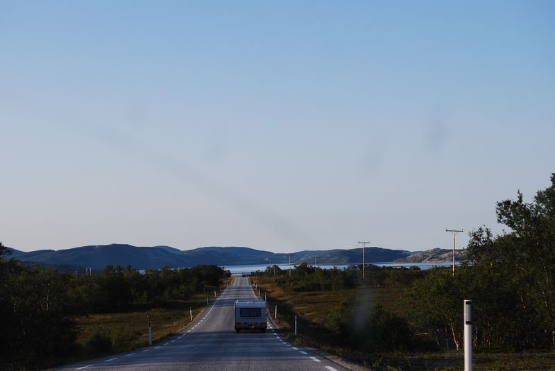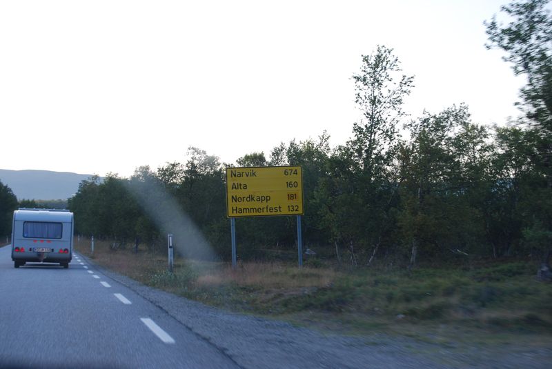 Nach Karasjok ging es ohne weitere schuldhafte Verzögerungen in Richtung Nordkapp. Gegen 21 Uhr erreichten wir einen Campingplatz bei Repvåg, unweit des Nordkapptunnels. Dort trennten wir von Toby und Anke, um die Nacht am Nordkapp erleben zu können. Obwohl wir keine Gäste des Campingplatz waren, konnten wir hier für den lächerlichen Betrag von 10 NOK duschen gehen. Die sehr freundliche Besitzerin parlierte perfekt auf Englisch, freute sich über unseren Besuch und wechselte uns jeweils 10 EUR zu einem korrekten Kurs in NOK. Gegen 23 Uhr fuhren wir weiter.