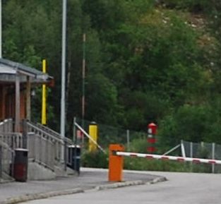In der Vergrößerung gut zu erkennen: Norwegischer und russischer Grenzpfahl.