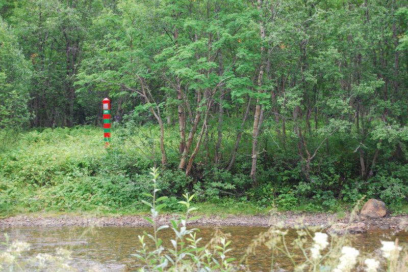 Während Toby und Anke auf dem Campingplatz blieben, fuhren Taylan und ich nun nach Grense Jakobselv (dt.: Grenze Jakobsfluß), um wenigstens einmal Rußland gesehen zu haben, wenn auch nur über den Grenzfluß. Die Fahrt nach Rußland selbst konnten wir mangels Visa – Taylans Zusage war dafür zu kurzfristig – nicht mitmachen.