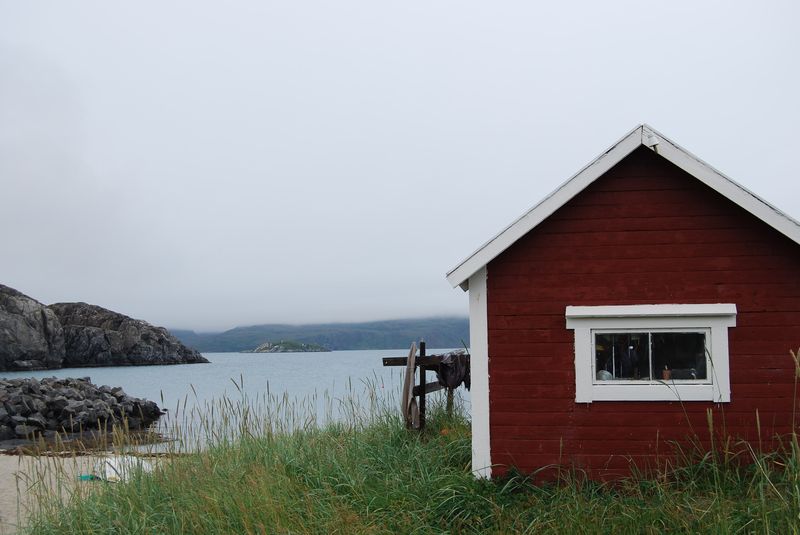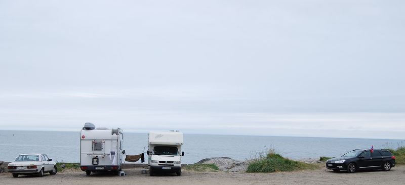Ich unternahm den waghalsigen Versuch, außerhalb Deutschlands als Deutscher Kontakt zu Deutschen aufzunehmen. Die Wohnwagen waren voller Aufkleber aus ganz Norwegen. Es erschien mir so, als hätten sie in jedem Kaff angehalten und Aufkleber gekauft. Doch ich wollte nur einen aus Gamvik, also ergriff ich Initiative: „Servus, ihr wart nicht zufällig in Gamvik und habt dort Aufkleber gekauft? Ich suche welche!“, „Was ist Gamvik?“, „Die nördlichste Gemeinde auf dem europäsichen Festland“, „Nee ...“, „Na dann, schönen Tag noch!“, „Tschüß!“. Nirgendwo sind Deutsche sich ferner als im Ausland, habe ich den Eindruck.