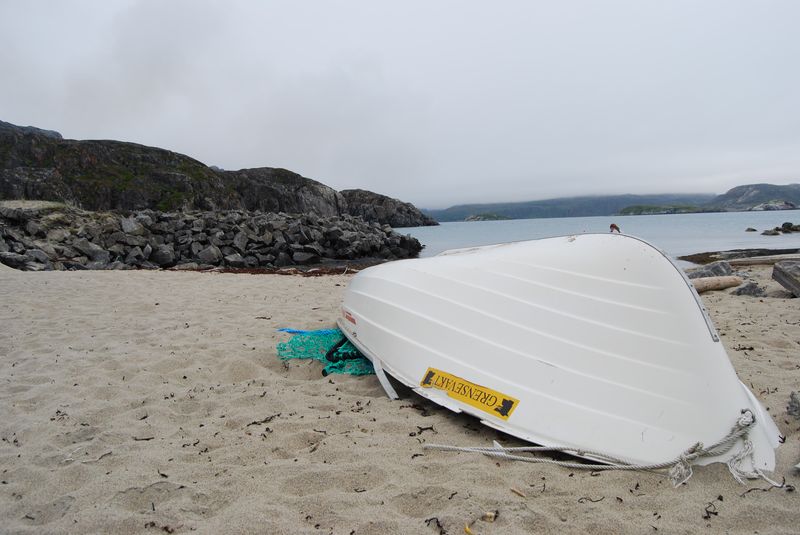 Ich einigte mich dann mit der Verkäuferin auf zwei Stücke der unter der Glastheke liegenden Pizza und war froh, daß wenigstens diese vorhanden und zu verkaufen war. Nachdem wir auch den Hafen und die unzähligen verrottenden russischen Schiffe, die ununterbrochen den Motor laufen hatten – da erzähle mir einer noch was vom Umweltschutz – gesehen hatten, fuhren wir zum Campingplatz zurück. Als Vorbereitung auf die Fahrt nach Grense Jakobselv entfernte ich alle für die Fahrt unnötigen Gegenstände aus dem Kofferraum und von der Rückbank und warf sie in's Zelt. Ich wußte nämlich schon aus der Lektüre anderer Reiseberichte, daß irgendwann die Straße aufhört und eine Schotterpiste weiterführt, da wollte ich mal nichts riskieren.