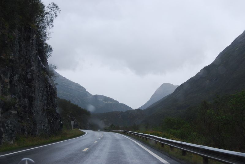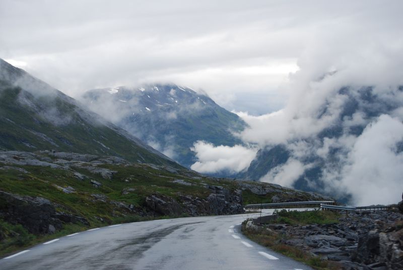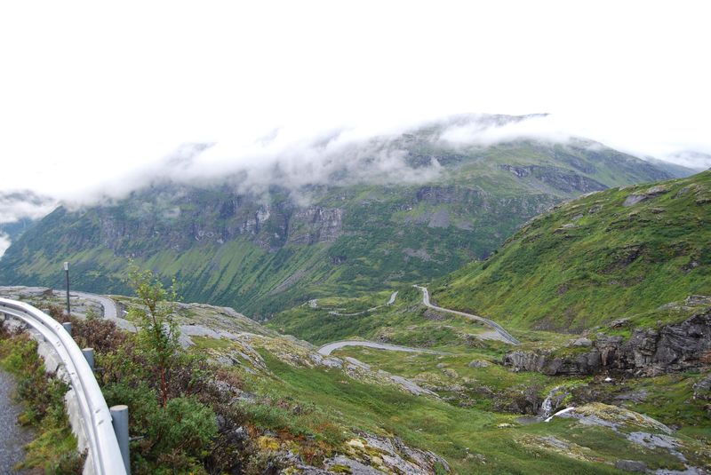 Wir befuhren zunächst die E6 bis Otta, dann die Straße 15 und 63 nach Geiranger. Wir erklommen alsbald den Dalsnibba, den Hausberg des Geirangerfjords. Leider verpeilte ich, daß man einen Abzweig zum Gipfel nehmen kann. Ich muß wohl das Schild übersehen haben.