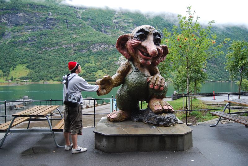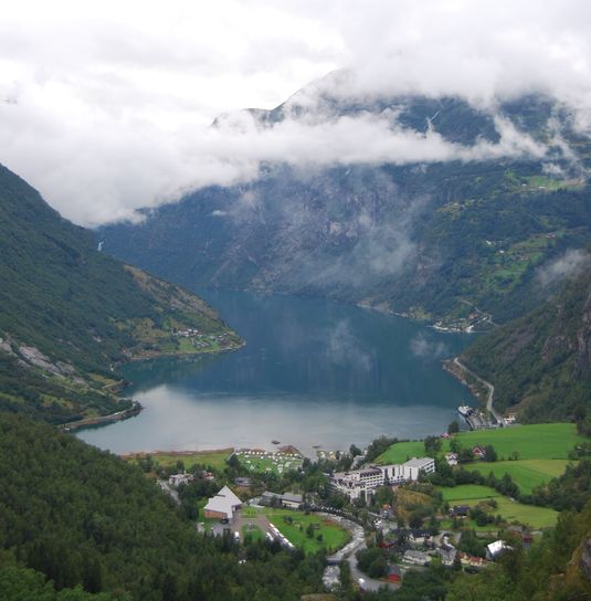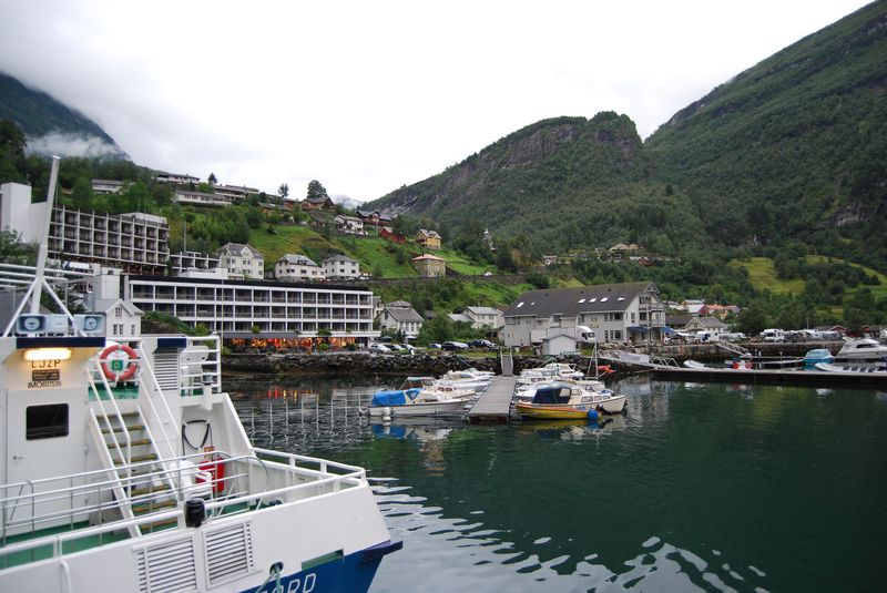 Irgendwann erreichten wir dann tatsächlich die Aussichtsplattform, von der aus man zum legendären Geirangerfjord hinunter sehen konnte. Der Anblick war wesentlich imposanter als auf jeglichen Fotos, die ich bisher von diesem Ort kannte. Unten angekommen kauften wir noch ein bisschen touristischen Krempel ein und gingen in ein Internetcafe um mal wieder Kontakt mit der Welt aufzunehmen. Meine E-Mail kam zwar nie beim Empfänger an, aber wenigstens hatte ich die Bundesliga-Ergebnisse des ersten Spieltages. Nachdem ich das Gefühl hatte, mich einigermaßen satt fotografiert zu haben, ging die Fahrt auch schon weiter.