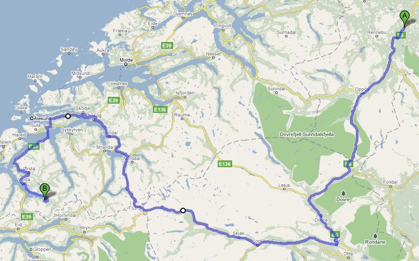 Alesund ankamen. Ich folgte der E39 und so stand der Benz alsbald
