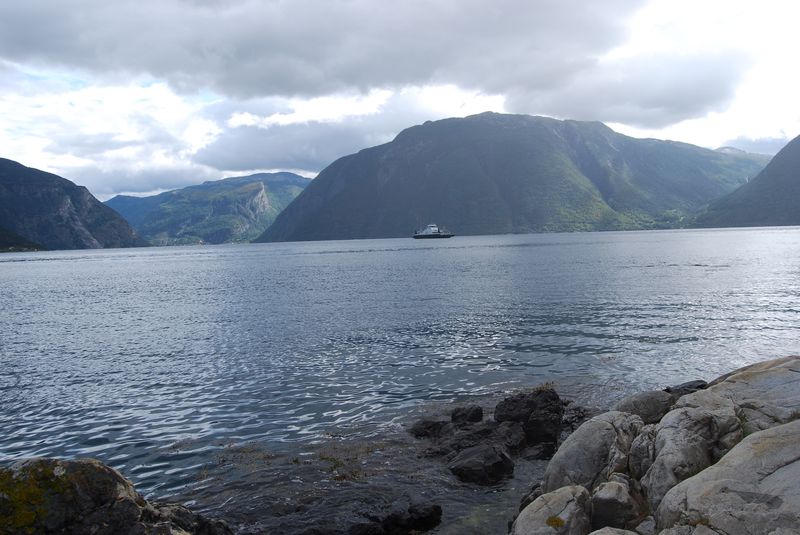 Nach einigen Kilometern kamen wir zur ersten Fähre des Tages. Die Überfahrt von Lote nach Anda über den Hundvikfjord kostete 81 NOK. Weiter ging es in Richtung Sogndal.