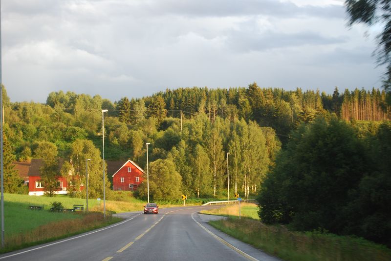Wir pennten nicht so lange wie die letzten Tage. Gegen 11 Uhr kamen wir los. Taylan sagte, daß er das Wichtigste gesehen habe. Er schlug vor, jetzt schon Kurs auf die Heimat zu nehmen um noch ein oder zwei Tage in Hamburg zu verbringen, wo wir bei einem Freund von ihm unterkommen konnten. Ich wäre zwar noch gerne etwas länger hier bei den Fjorden geblieben, doch mit den vielen Fähren läppert sich das doch schon arg. Also wurde das Navi erstmal auf Svinesund an der norwegisch-schwedischen Grenze eingestellt, dort wollte ich den Benz wieder volltanken. Das Navi zeigte um die 700 km Distanz ein. Ich dachte also, der Wagen würde ohne weiteren Tankstopp bis zur Grenze auskommen. Der verbaute 80-Liter-Tank ist schon etwas Feines.