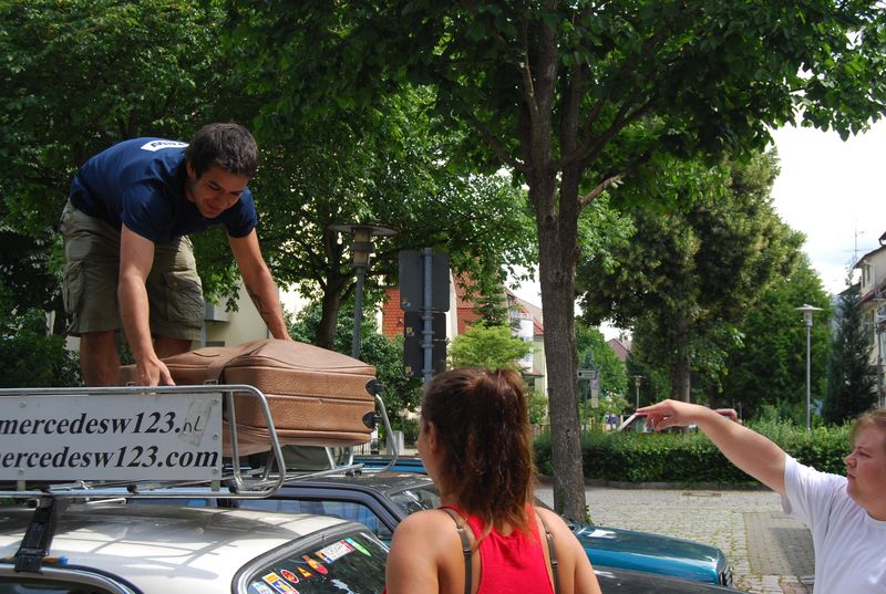 Frühstück währen wir das Gepäck auf dem Dach verzurrten. Erdem wies uns