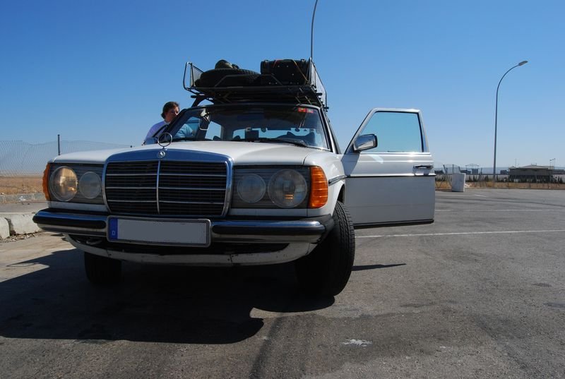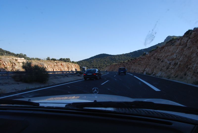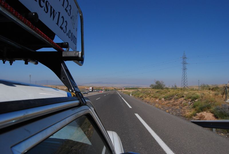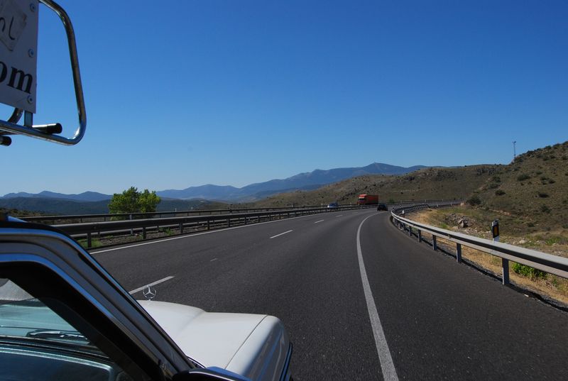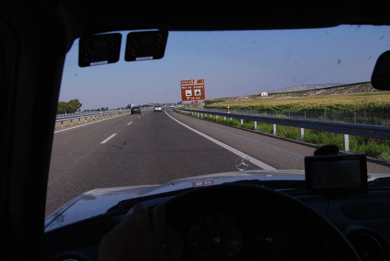 Um 4:36 Uhr erreichten wir die Solred-Tankstelle La Jonquera auf spanischem Boden. Endlich waren wir von Frankreich erlöst. 52,20 EUR Maut sind wir dort losgeworden, für kaum mehr als 450 Kilometer Autobahn. „Nie wieder!“, stimmten wir an. Bei Kilometerstand 325.201 wurde der Daimler mit feinstem spanischen Diesel für 1,096 EUR /L bis zur Halskrause gefüllt. Endlich konnten wir auch wieder in einer Sprache kommunizieren und hatten uns vom „elendsten romanischen Jargon“ gelöst. Francis konnte nun seine Tätigkeit als Sprachmittler aufnehmen. Aber auch auf Englisch wurde ich verstanden. Francis fuhr weiter, ich wechselte auf die Rückbank und hoffte dort kurz abschalten zu können. Vergebens. Eine innere Unruhe in mir verhinderte den Schlaf. Von der Grenze bis Barcelona bezahlten wir knapp 12 EUR für die makellose Autopista, noch einmal 3,50 EUR auf dem Autobahnring entlang der katalanischen Metropole, anschließend wechselten wir auf die Straße in Richtung Zaragoza.
