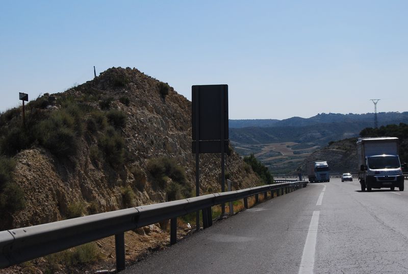 Ich hatte vorher im Internet recherchiert und herausgefunden, daß man auf dem Inlandsweg ab Zaragoza mautfrei über die Autovias fahren kann, während man auf der Küstenroute über Valencia noch viele hundert Kilometer mautpflichtig unterwegs ist, respektive es keine Alternative zur kostenpflichtigen Autopista gibt. Unser Umweg über Zaragoza und Madrid, knapp 100 km, wird also durch die Mautfreiheit wieder wettgemacht.
