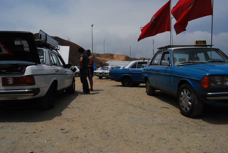 Wir erhielten die marokkanischen Einreisestempel, die unsere vier Reisepässe entjungferten. Die Fähre legte an und der Wettkampf ging los, wer als erstes in seinem Auto sitzen und sich dort langweilen würde. Denn vom Anlegen bis zu dem Zeitpunkt, an dem man den Motor starten und herausfahren konnte vergingen naturgemäß noch viele Minuten.