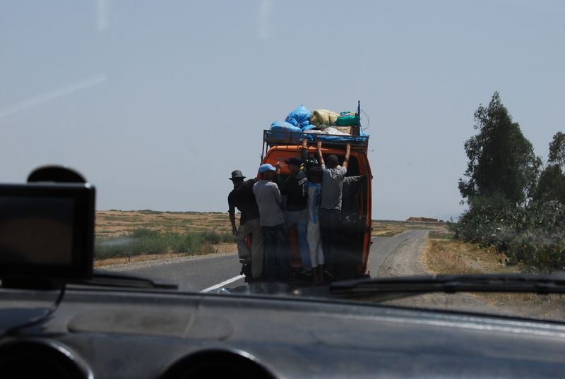 Kurz nach dem Ortschild hielten wir noch mal an einem Kiosk um die Wasservorräte aufzustocken und noch mal auf Chefchaouen zurückzublicken. Diese Stadt können wir uneingeschränkt empfehlen. Gerade weil sie nicht allzu groß geraten ist hat es uns hier sehr gefallen. Ungefähr eine dreiviertel Stunde nach der Abfahrt, auf der N13, machten wir eine erste kurze Rast. Währenddessen klingelte das Handy mit der marokkanischen SIM-Karte, das mir Florian mitgegeben hatte. Mahmud war dran und erklärte, daß er seinen Haustürschlüssel vermisse und fragte, ob wir ihn hätten. Wir meldeten Fehlanzeige und vertrösteten ihn.
