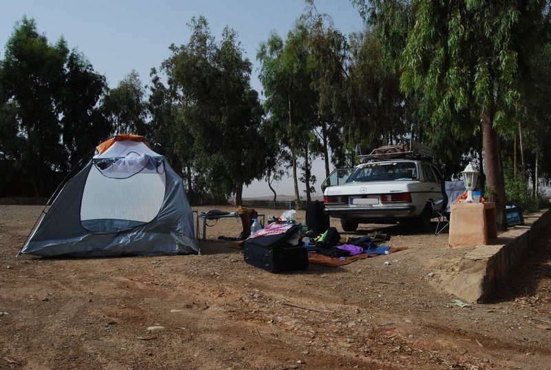 Weit nach Sonnenuntergang kamen wir dann wieder in Tinerhir auf dem Campingplatz an, wo sich nichts verändert hatte. Wir genossen die lauwarme Nacht und den schönen Himmel. Lediglich ein leichter Müllgeruch störte. Die Deponie war wohl nicht weit.