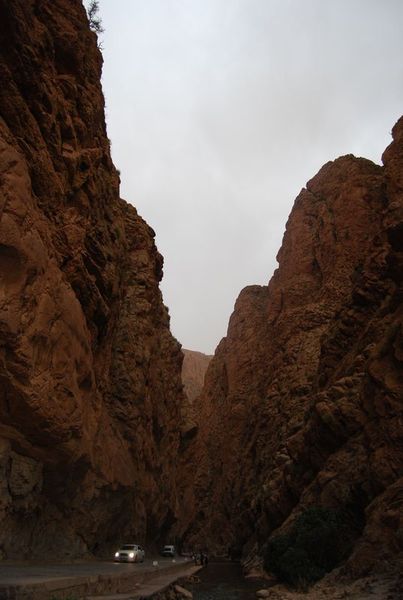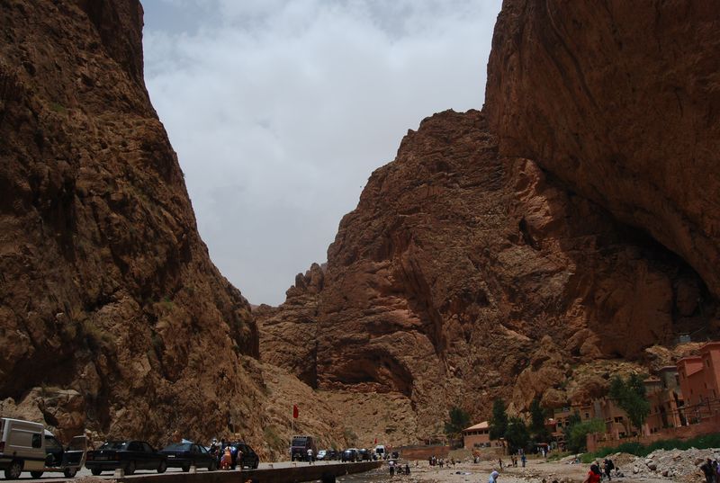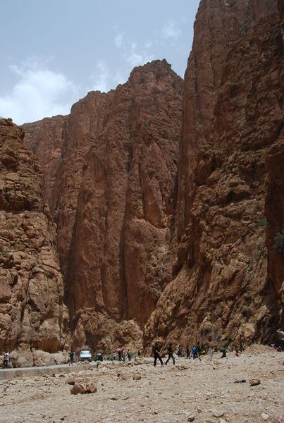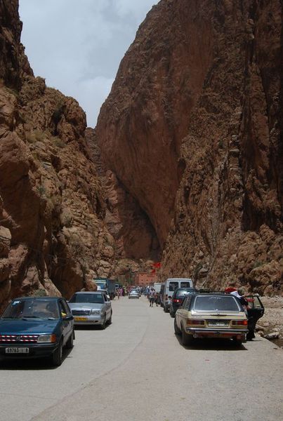 Wir fuhren weiter in Richtung Schlucht und bekamen eine wunderschöne Landschaft zu sehen. Hier fährt man wie schon in der Todra durch die Schlucht, die sich der Fluß gegraben hat. Hunderte Meter hohe Felswände auf Back- und Steuerbord. Beeindruckend!