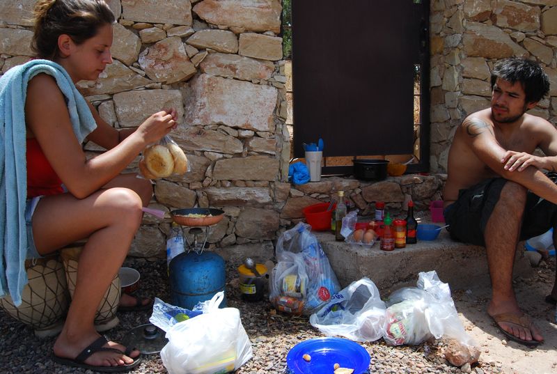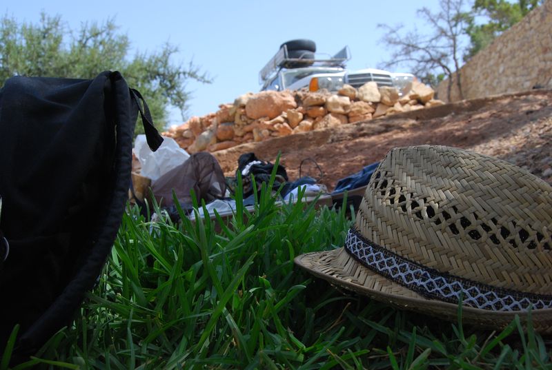 Abends setzten wir uns an die kleine Sitzgruppe unten am Eingang, wo wir in der ersten Nacht campten. Auf unserem damaligen Platz hatten nun ein paar Franzosen mit ihren Jeeps ein Camp aufgebaut. Sie waren wohl schon zu Bett und es gefiel ihnen gar nicht, daß wir da rumsaßen und Spaß hatten. Anstatt uns aber zu bitten, den Platz zu verlassen oder leiser zu sein, stieß der Oberfranzose lediglich unartikulierte Laute aus. Damit meine ich nicht gewöhnliches Französisch, nein, er grunzte und röchelte irgendwas vor sich hin. So sahen wir uns nicht verpflichtet, etwas an unserem Standort zu verändern und tranken und redeten weiter.