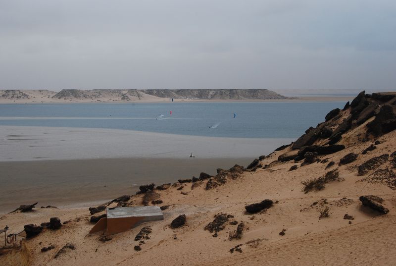 Taylan war deutlich vor allen anderen wach, zog umher und machte viele beeindruckende Photos der Dakhlaer Lagune an der Gabelung zwischen dem Festland und der langgestrecken Halbinsel, auf deren Südspitze Dakhla liegt: