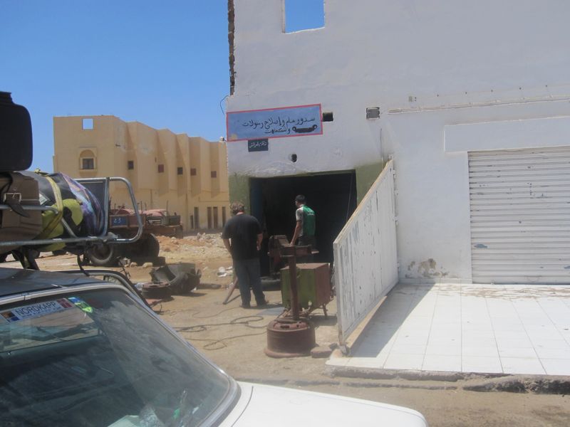 Service pneumatique in Boujdour, der Reifen vorne links wird
