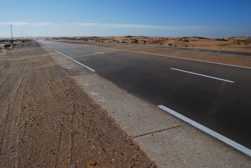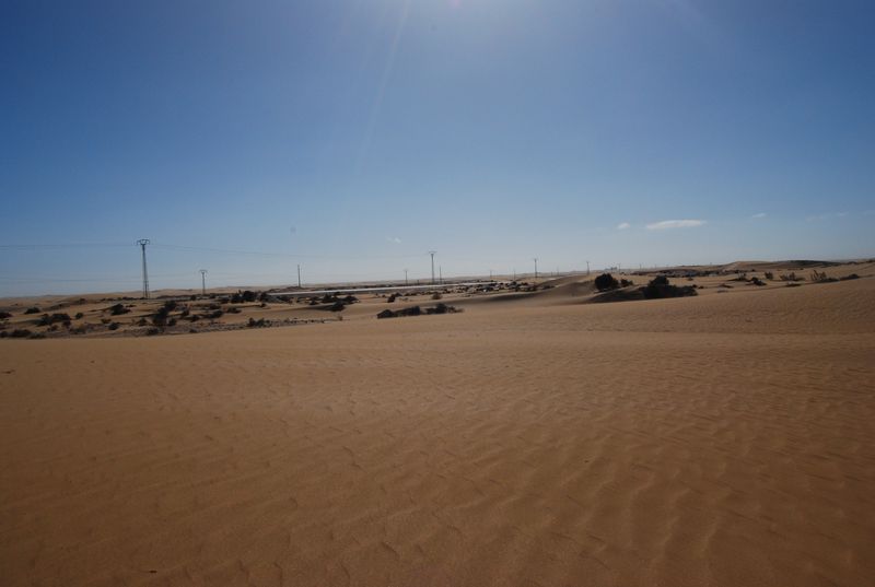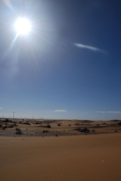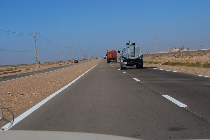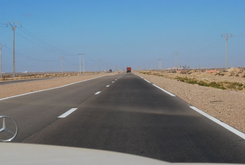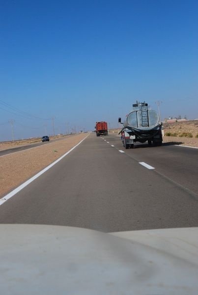 Dies war unser letzter Tag in Dakhla. Unaufhaltsam ging es nun zurück, 5000 km in Richtung Heimat. Wir bezahlten den Campingplatz und wurden von Patrick mit der Tatsache überrascht, daß er uns erklärte, er hätte die Benutzung der Dusche durch uns gezählt und hätte sie daher zusätzlich abgerechnet. Zu einer Art Dreistigkeit wird diese Vorgehensweise in dieser frischwasserarmen Gegend eigentlich nur dadurch, daß das Wasser aus dem Duschkopf lediglich tröpfchenweise plätscherte und er auch auf Nachfrage dies nicht ändern konnte. Keiner hatte jedoch Lust, sich mit ihm um ein paar Dirham zu streiten, vor allem weil er ohnehin nur arabisch und französisch sprach. Also gaben wir ihm sein Geld und fuhren los. Der „Nix-Verstänn“-Trick funktioniert also auch umgekehrt.