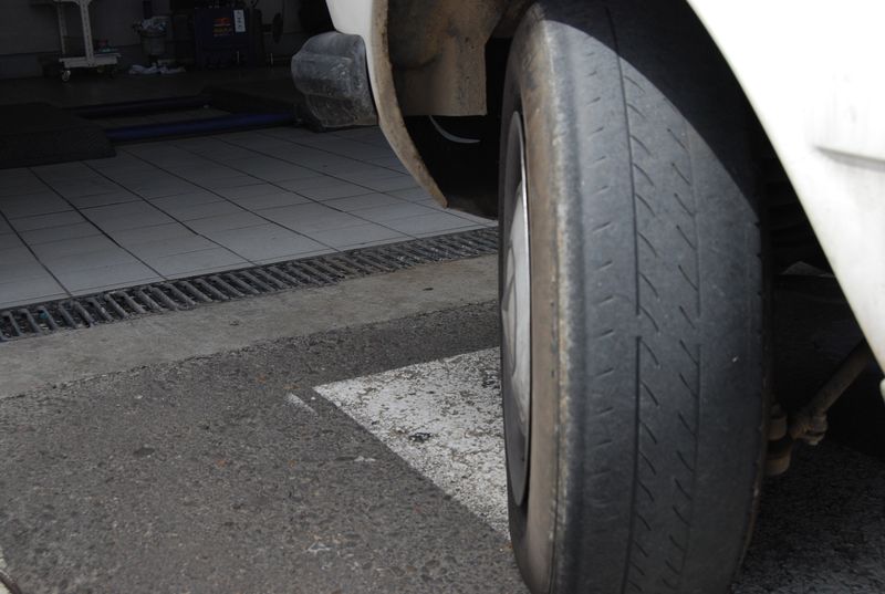 Das Umdrehen des Reifens kostete lächerliche 7 EUR, das Wuchten sparten wir uns. Der Wechsel vorne links auf den 10 Jahre alten Uniroyal mit vollem Profil wurde unter der Hand kostenlos erledigt.