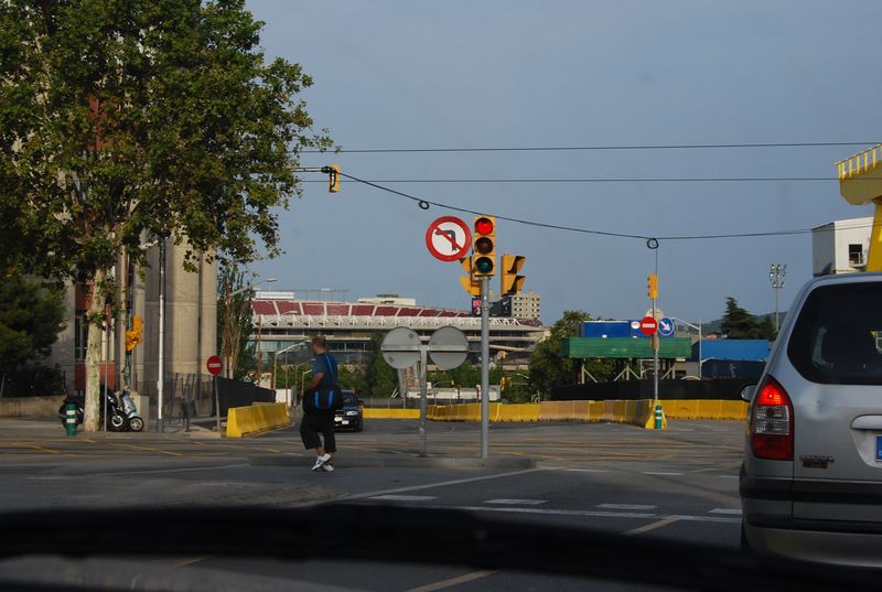 Wir zogen weiter in Richtung Barcelona und hielten uns an die kostenlosen Strecken. Nach Zaragoza muß man dann auf die N-II wechseln, eine mittelmäßig ausgebaute Landstraße. Aber ob man auf der Autobahn oder der Landstraße 80 km/h fährt ist ja egal. Wir wollten uns unbedingt das Stadion vom FC Barcelona anschauen und stellten daher das Navi auf das Camp Nou ein. Gegen 19:30 Uhr waren wir da.