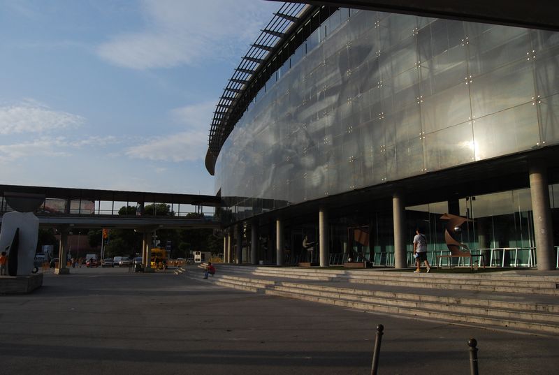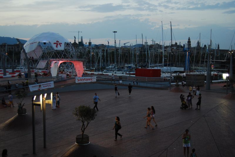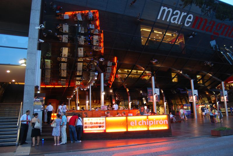 Eine Begehung war leider nicht mehr möglich, wir konnten nur durch den Eingang hineinlinsen und einen mikroskopischen Ausschnitt dieses unglaublich riesigen Stadions mitschneiden. Anschließend fuhren wir weiter in die Innenstadt und stellten den Wagen im Parkhaus am Hafen ab. Wir liefen die Rambla del Mar, eine künstliche Shoppingmeile auf dem Hafenwasser, entlang, gönnten uns einen McFlurry und zogen über das Columbus-Denkmal (Monument a Colom) zur La Rambla (w), der bekanntesten Promenade der Stadt. Dort holten wir uns im Carrefour ein paar günstige Biere und zogen damit durch die Straßen und genossen die laue Nacht in dieser Weltstadt.
