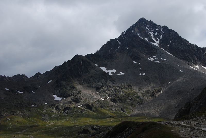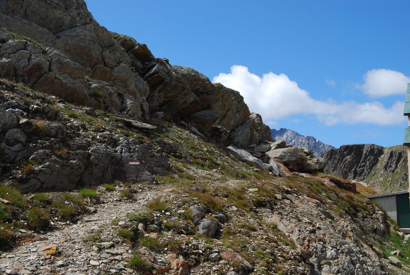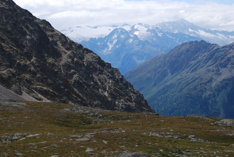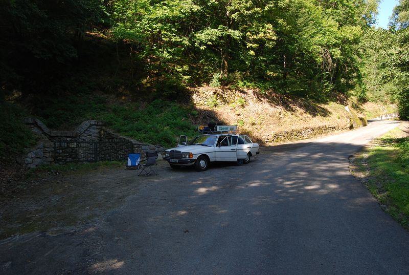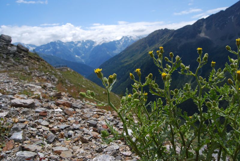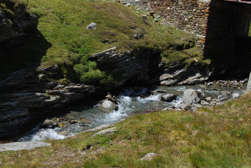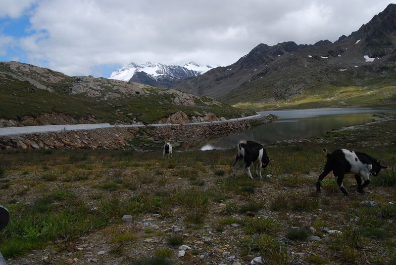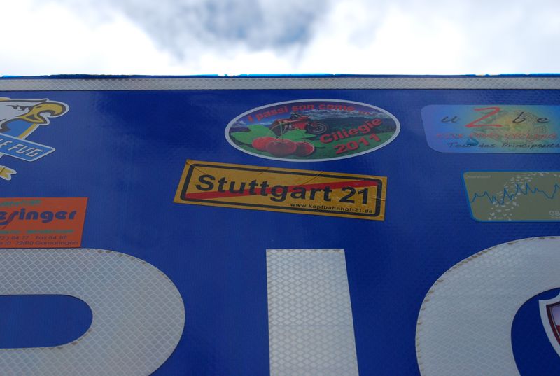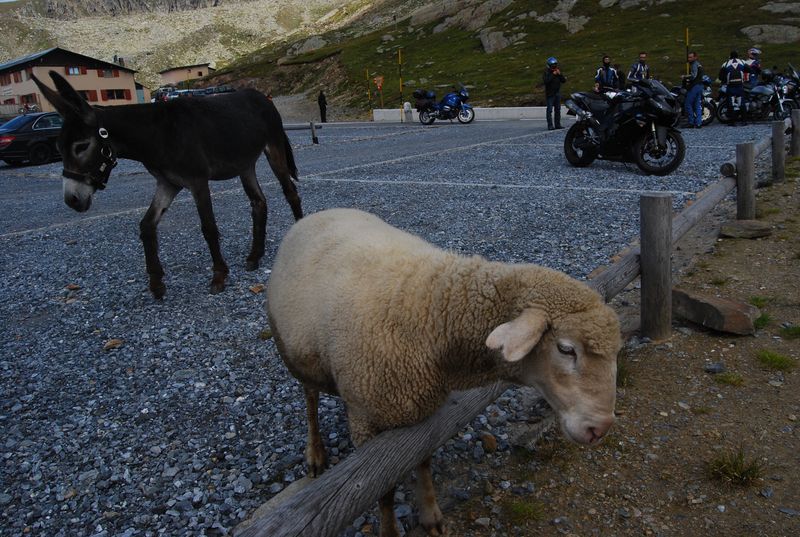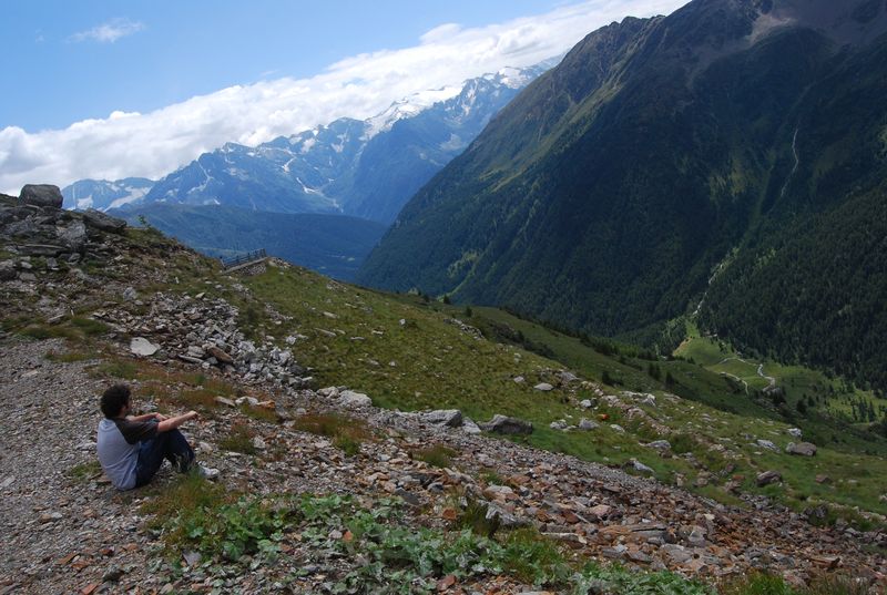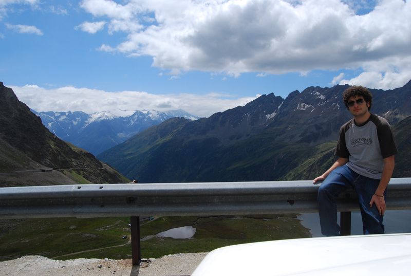 Gegen 10 Uhr kamen wir weiter und fuhren wieder bis nach Bormio, weil wir nun auf den Gaviapaß hinauf wollten. Den konnte ich ja 2009 nicht befahren, weil mir wegen des defekten Elektrolüfters an der Südseite der Kühler überhitzt war. Nun sollte der Paß aber fallen! Schon der Aufstieg bot einige Stellen auf, an der keine zwei Autos nebeneinander vorbeipaßten. Hin und wieder gab es dann Ausweichstellen und man mußte sich dann einig werden. Während des Anstiegs hielten wir für eine kurze Frühstücksbrotzeit. Auf der Paßhöhe wurden einige Photos gemacht und wir bestiegen eine kleine Anhöhe, von der wir die Südseite hinabsehen konnten. Es sah aus, als würde der Berg einfach abbrechen und man könnte in eine riesige Schlucht stürzen, so stark ging es bergab. Die Straße konnte man von hier gar nicht sehen.