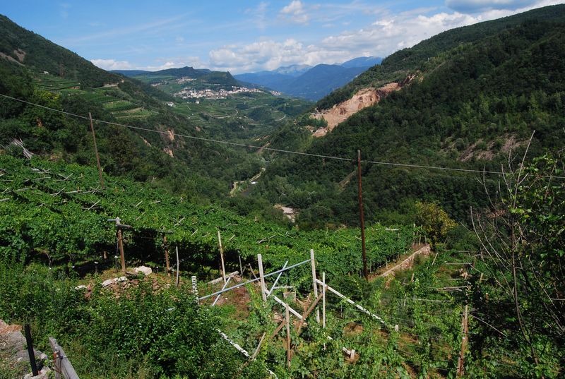 Behutsam und in vielen leichten Kurven schlängelten wir uns auf eine verträgliche Höhe über Meeresspiegel, wodurch wir in immer wärmere Gefilde kamen. Bei Trient hatte es bestimmt gute 35 °C und wir waren dem deutschen Pseudo-Sommer endgültig entkommen. Ich stellte das Navi auf Predazzo ein, denn wir wollten die Alpen noch nicht gleich verlassen, sondern in den nächsten 1-2 Stunden einen Campingplatz finden und den Abend gemütlich ausklingen lassen. Nach 40 Kilometern standen wir bei Faver auf einmal vor einer Straßensperre und es stellte sich heraus, daß ich das entsprechende Umleitungsschild einfach übersehen habe. Wir mußten 10 Kilometer zurückfahren und die Umleitung über die SP71 auf der anderen Bergseite nehmen. Die Strecke gefiel sehr! Ein Campingplatz wollte und wollte aber einfach nicht kommen. Die Straße führte geradewegs auf den Passo de Rolle. Kurz vor dem Paßanstieg, auf gut 1100 m Höhe, kam rechterhand ein Campingplatz („Camping Valle Verde“).