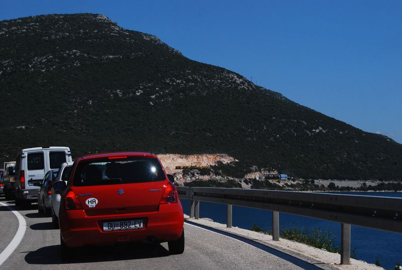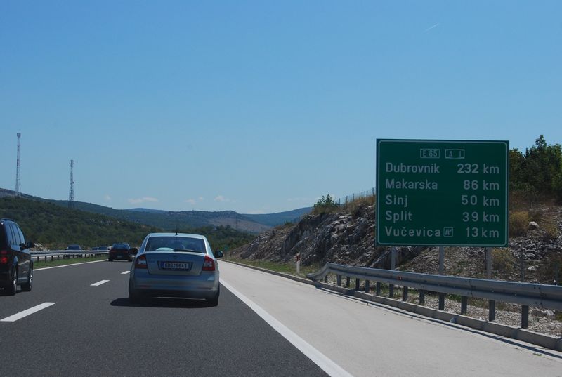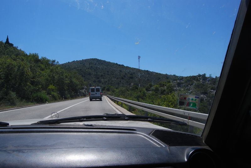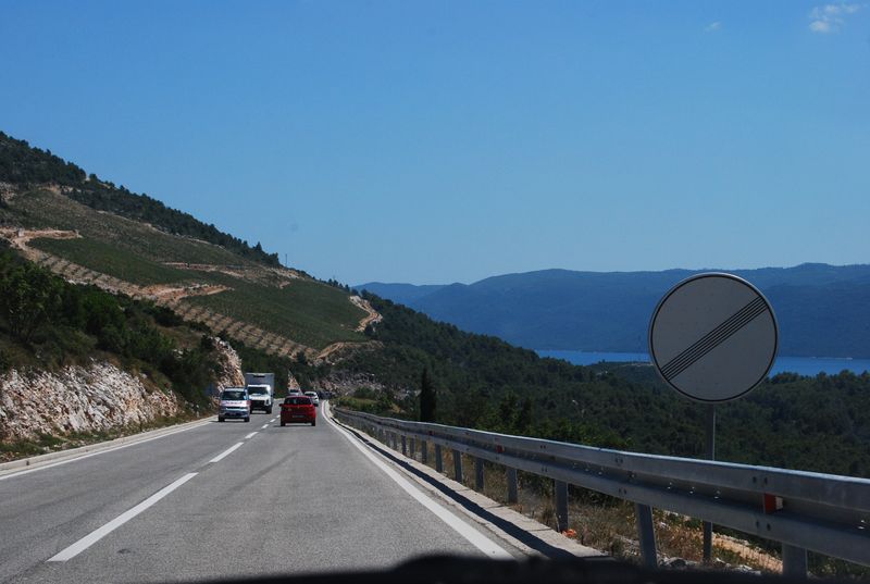 Aufbruch, hinaus aus Kroatien und hinein ins bisher unbekannte Montenegro. Wir bezahlten den Platz, bedankten uns noch einmal sehr herzlich und fuhren nachdem wir unser Leergut im örtlichen Supermarkt abgegeben hatten – mangels einheitlichem Pfandsystem eine Sisyphusarbeit – stracks auf die Autobahn. Diese führte bis 30 km vor die bosnische Grenze bei Neum und kostete 59 HRK Maut, geschenkt. Die letzten Kilometer waren noch im Bau, der Rest erst kürzlich eröffnet worden. Entsprechend gut ging es voran. Erstklassige Fahrbahn, erstklassige Landschaft, erstklassiger Ausblick.