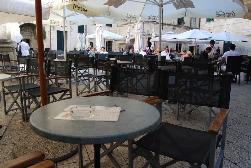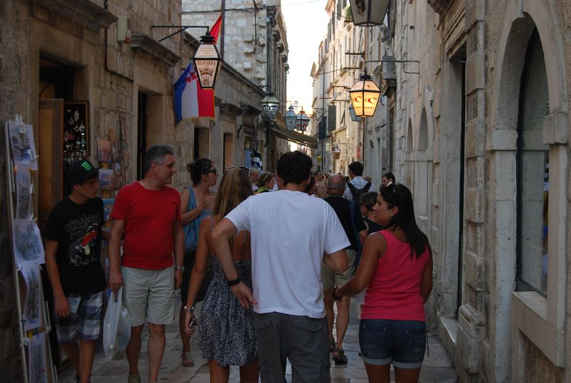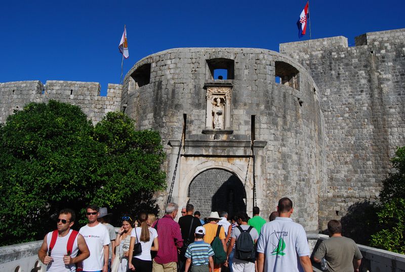 Kurz vor der Grenze kauften wir in einem „Studenac“-Supermarkt noch Brot, Käse und Wurst ein, um in Dubrovnik spätfrühstücken zu können. Ist ja nicht mehr weit, dachten wir. Doch hatten wir die Rechnung ohne die bosnischen und kroatischen Grenzer gemacht. Zwischen dem Kroatischen Hauptterritorium und der Exklave von Dubrovnik liegen 5 Kilometer Bosnien, der Hafen von Neum. Um nach Bosnien hineinzukommen, standen wir eine gute Stunde im Stau, wurden an der Grenze dann aber durchgewunken. In Neum gab ich die letzten Mark aus Bosnien an einer Tankstelle aus, wenige hundert Meter später war das Stauende zur kroatischen Grenze erreicht. Es dauerte eine gute dreiviertel Stunde, bis wir dranwaren. Der Bosnier winkte uns durch, der Kroate sah kurz die Pässe durch. Dann wurde mit Aller Kraft Kurs auf Dubrovnik gehalten.