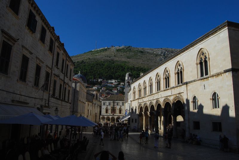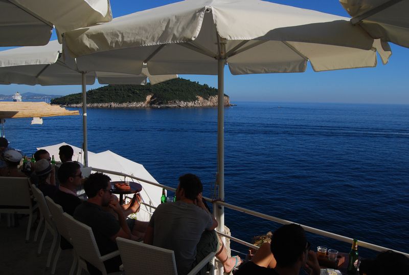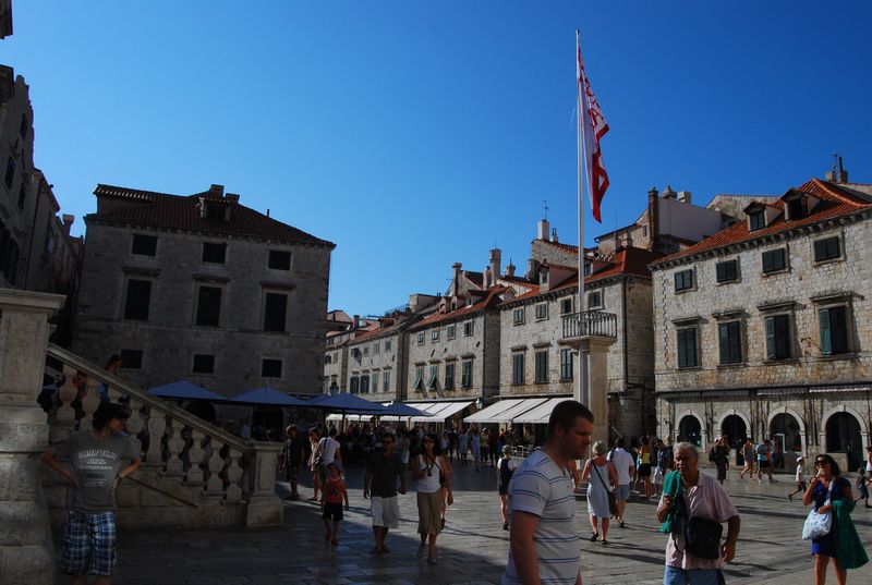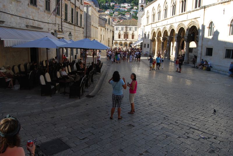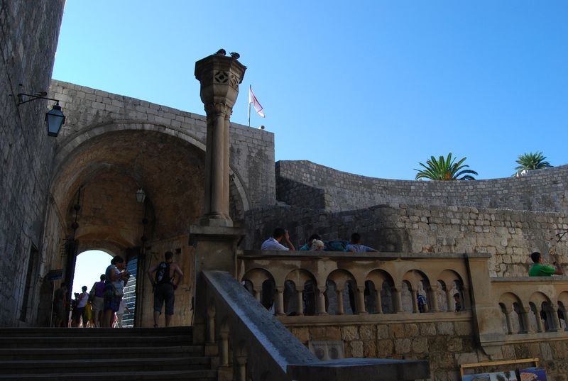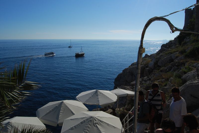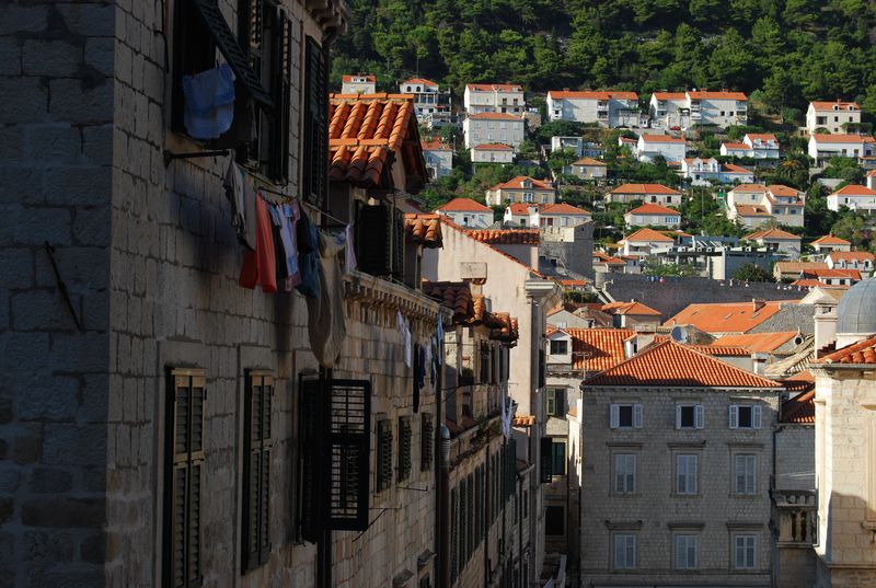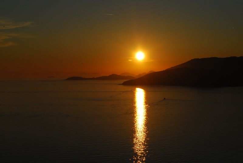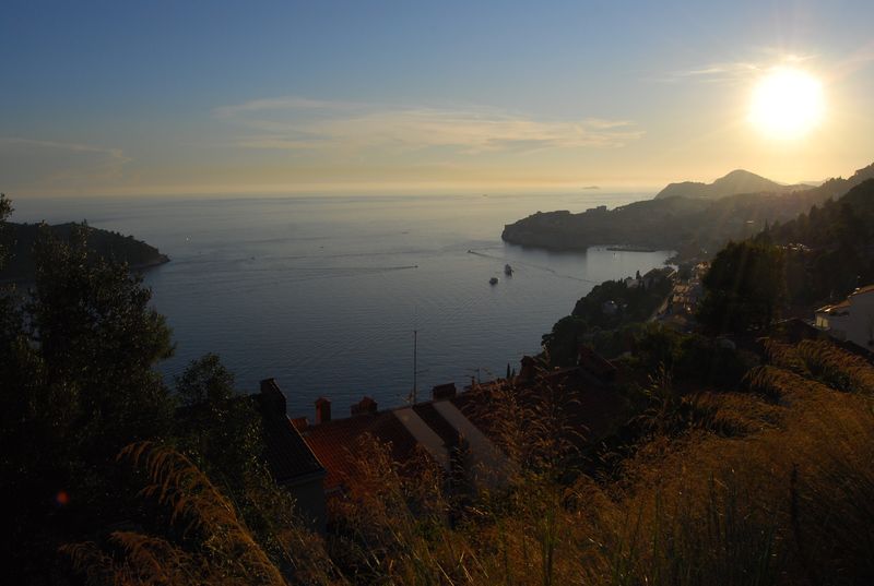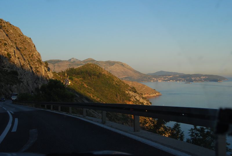 Im Konzum haben wir uns zum Abschluß noch Cola und Eis geholt und uns an einen Brunnen gesetzt, dann ging es langsam wieder zurück zum Auto. Die Stadtmauern waren uns mit 70 HRK „Eintritt“ dann doch zu teuer. Das Auto wurde ausgelöst und die Fahrt in Richtung Montenegrinische Grenze fortgesetzt. An einer Haltebucht warfen wir einen letzten Blick auf Dubrovnik, das zwar einen gemischten aber insgesamt recht positiven Eindruck hinterließ. Wir wollten möglichst Schnell Kotor erreichen um noch ein paar letzte Sonnenstrahlen für schöne Photos der Kotor-Bucht zu erhalten, die fälschlicherweise oft als südlichster Fjord Europas bezeichnet wird.