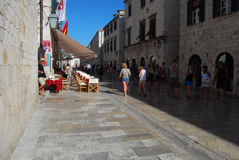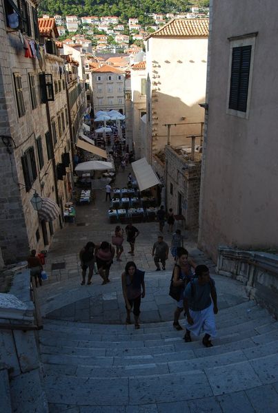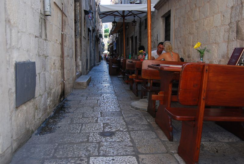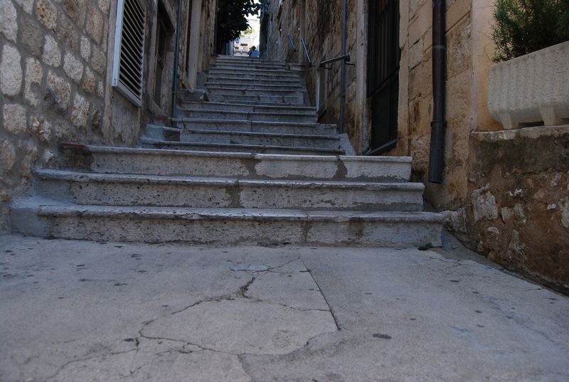 Auf dem Weg zur Innenstadt fand sich dann ein Parkhaus, das zwar 15 HRK die Stunde kostete, aber Alternativen gab es wohl auch nicht. Im angrenzenden Park nahmen wir dann endlich unser „Frühstück“ ein, anschließend liefen wir die Treppe in die Altstadt herunter. Diese bot viele enge Gassen und erinnerte an Venedig – nur das Wasser fehlte.