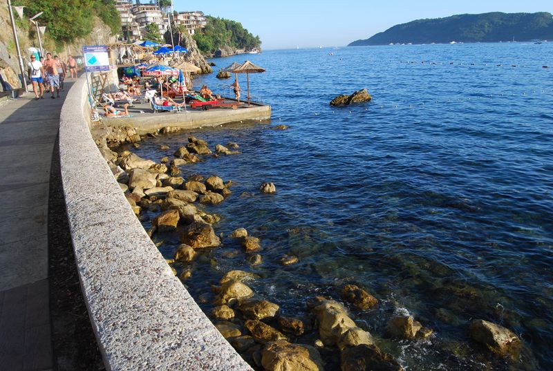 Über die Strandpromenade liefen wir zurück zum Hotel. In jedem der vielen Freßtempel gab es frische Burger und Hähnchenfilets mit Salat im Brot, selbst nach Gusto zu belegen für 2-3 EUR. An so einem Stand wurden wir von einem aus Albanien stammenden Wiener angesprochen, ob wir auch aus Wien seien. Das verneinten wir, unterhielten uns aber noch kurz über Montenegro und die Gegend.