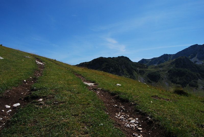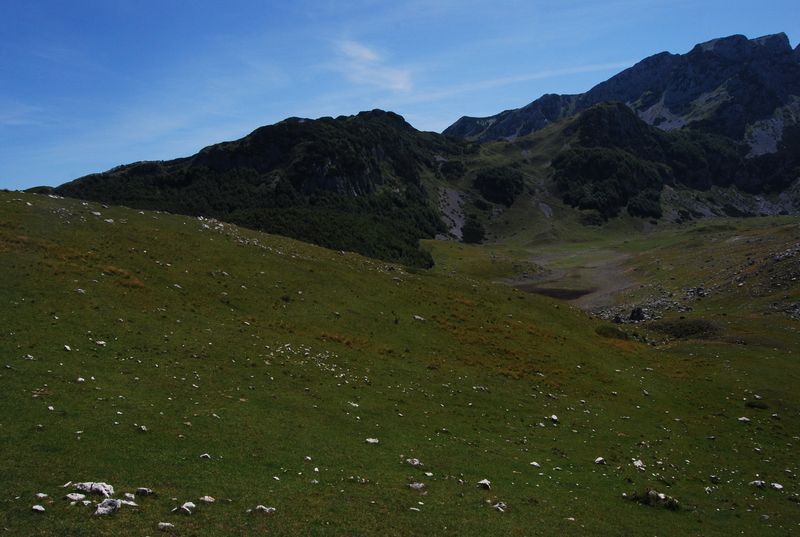 Viele Kilometer weiter kamen wieder erste Dörfer und bewirtschafteten Felder zum Vorschein, doch gab es keine Schilder, die die nächste größere Stadt oder den Weg zurück anzeigten. Wir irrten durchs Unbekannte, denn das Navi hatte auch keine Karte hiervon. Ein Gastwirt konnte uns mit Händen und Füßen erklären, daß die Strecke nach Plužine weiterführte. Leider fiel der angedachte Abstecher zum Berg Crna Gora – übersetzt Schwarzer Berg (Montenegro), und damit Namensgeber des Staates – somit aus.