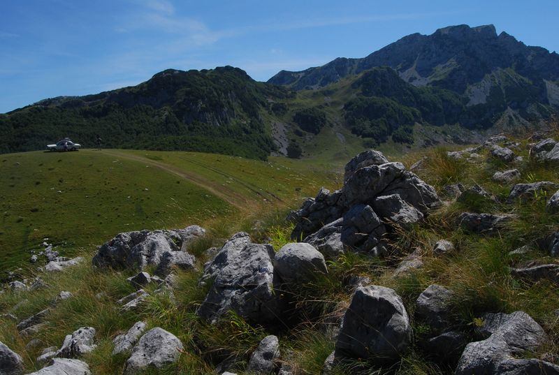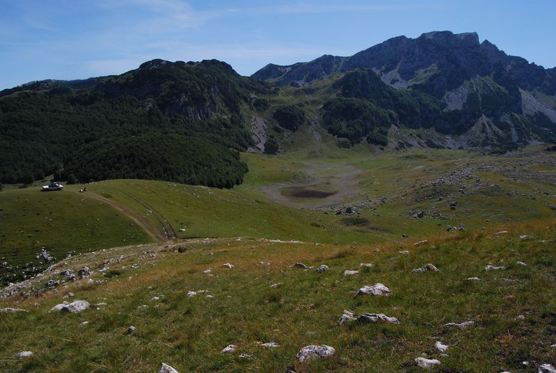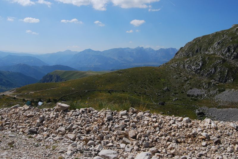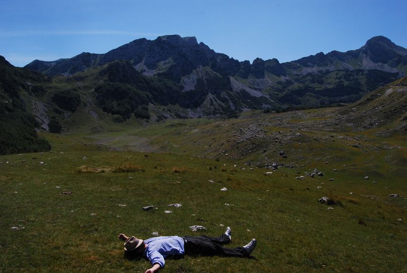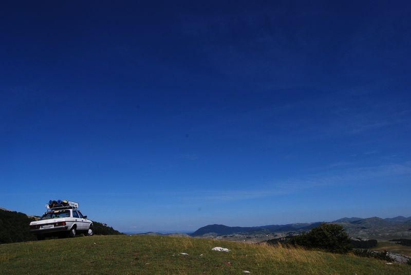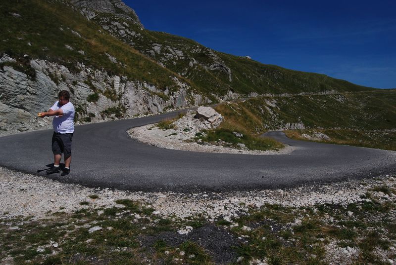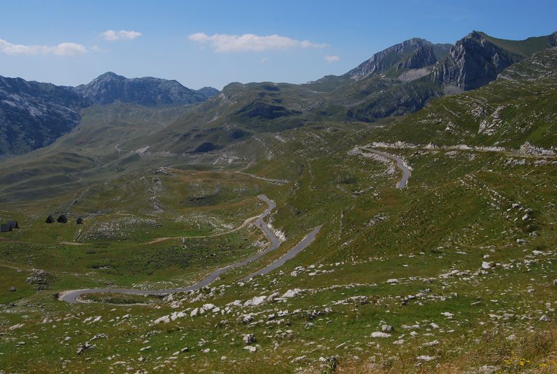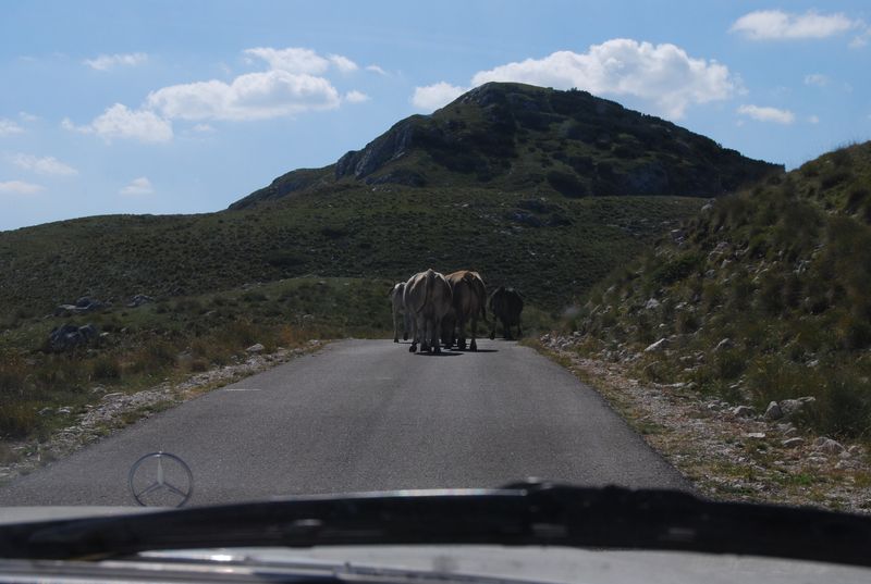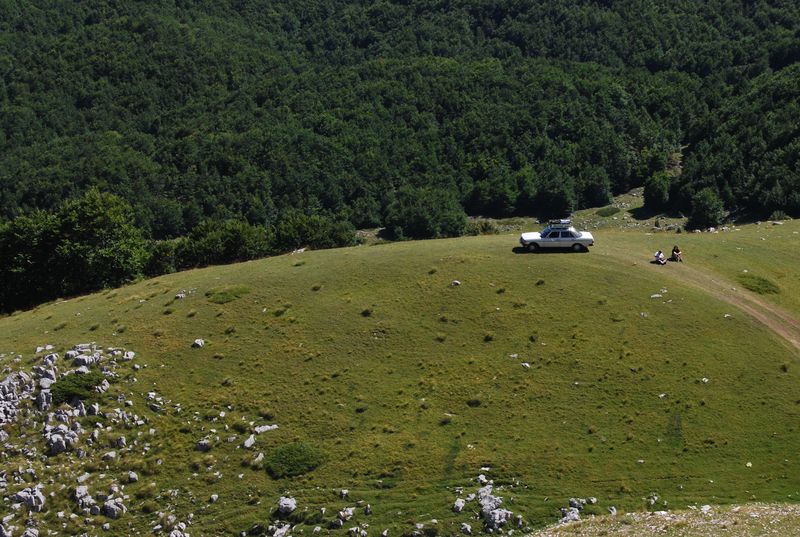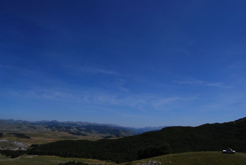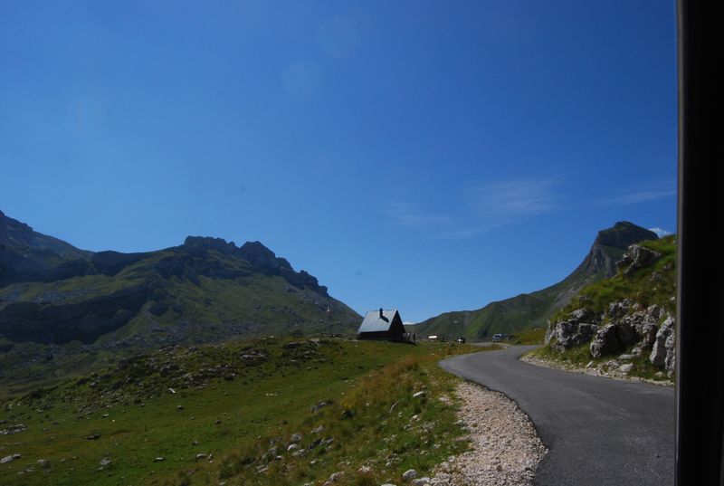 In Podgorica, das der Lonely Planet eindeutig als langweilig brandmarkt, und welches auch genauso aussieht, kauften wir im Supermarkt Proviant ein. Frühstück gab es hinter Šavnik neben der Straße in einer Serpentine. Allmählich sahen wir die hohen Berge am Horizont. Die Straße schlängelte sich auf über 1500 m Höhe, aber meine Mitfahrer waren dennoch tief und fest eingeschlafen.