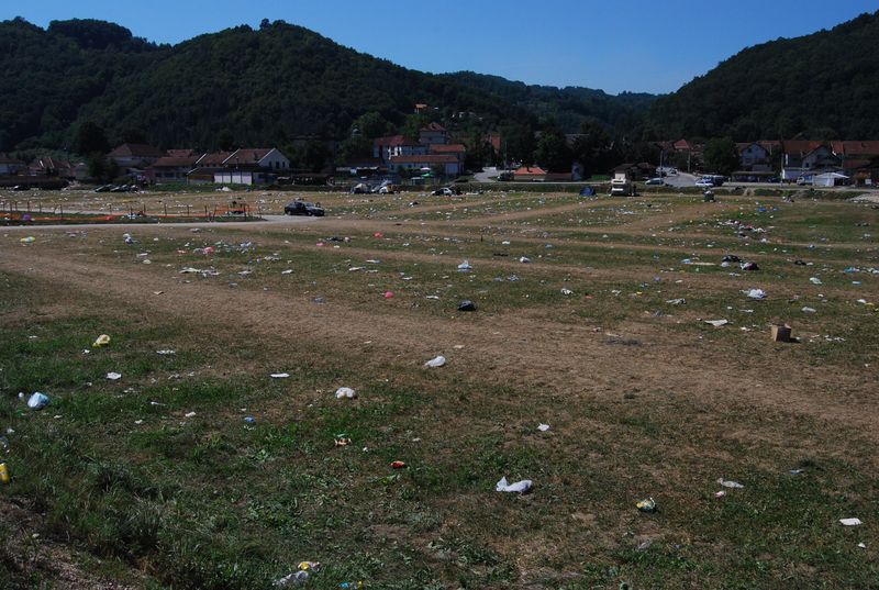Erst kurz vor Mittag konnten wir uns aus dem Zelt erheben und ganz langsam damit anfangen, zusammenzuräumen. Die Campingfläche war fast leer und wir waren eine der wenigen Gruppen, die noch nicht weggefahren waren. Der Müll wurde fein säuberlich getrennt auf die Wiese geworfen, anschließend geduscht und währenddessen von den Nicht-Duschern ein Frühstück im Supermarkt besorgt. Katha, Peter und Garci mußten den Bus nach Belgrad bekommen, dort wollten sie noch einen Tag bleiben, bevor der Flieger heim ging.