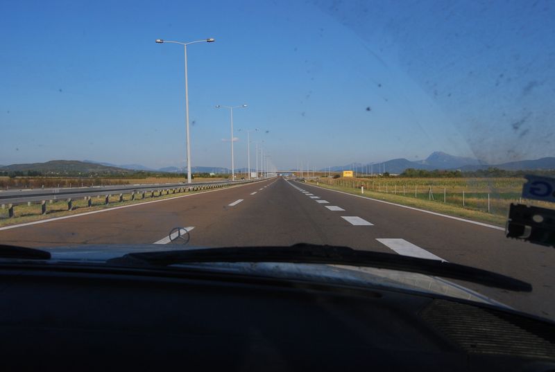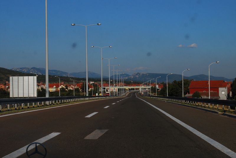 In Krusevac hielten wir noch an einem Imbiß und aßen Salat und Burger. Der Appetit verging, als wir die Toilette sahen und konnten nur beten, daß die „Köche“ eine andere benutzten. Der Gastwirt dachte sich irgendwelche Fantasiepreise für unsere Portionen aus und laberte irgendetwas davon, daß er mal in Deutschland gearbeitet hätte. Wir waren froh, als wir raus waren. Nebenan in der Bäckerei holten wir noch Brot und fuhren auf die Autobahn, als wir eine Straßensperrung überwunden hatten, für die es keine Umleitung gab. Wir mußten uns über irgendwelche Feldwege den Weg bahnen.