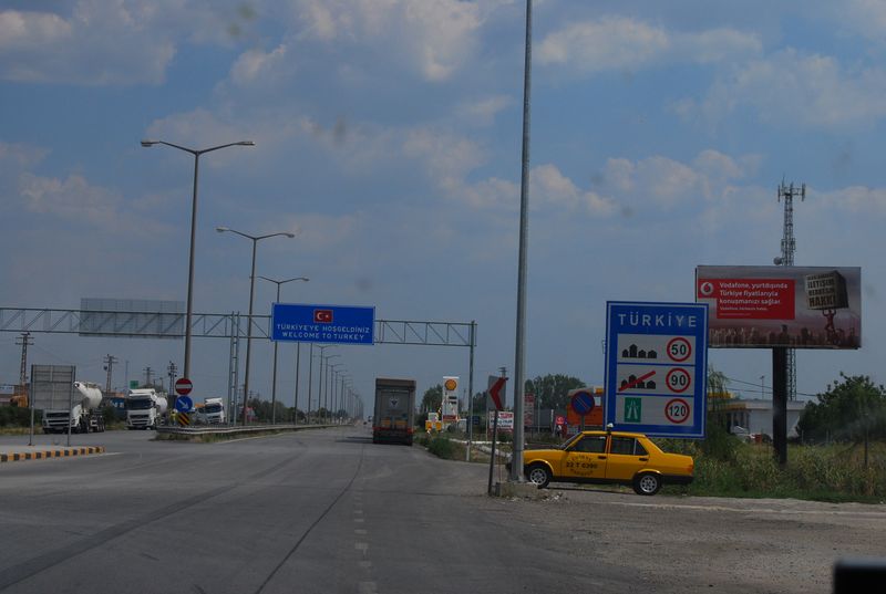 Die Bulgarische Polizei sah sich nur die Pässe an, der Zoll war nicht da. Im Niemandsland zeigte sich eine riesige neue türkische Grenzanlage, bei der niemand anstand. Vielleicht wegen Ramadan? Natürlich haben wir schon viele Horrorgeschichten über die Einreise in die Türkei gehört. Daher bat ich Taylan, kein Türkisch zu sprechen, aber er sagte das würde nicht funktionieren, so gut könne er nicht lügen. War auch gar nicht notwendig, denn im Einreiseschalter saß ein Gleichaltriger, der sich die Pässe ansah, und sofort mit Taylan eine Konversation begann. Sie unterhielten sich über die Deutschen Fußballclubs und türkischstämmige deutsche Spieler, während er die Stempel setzte. Er verabschiedete sich mit „Na Taylan, dann zeig den Deutschen mal das Land, viel Spaß!“.