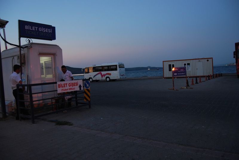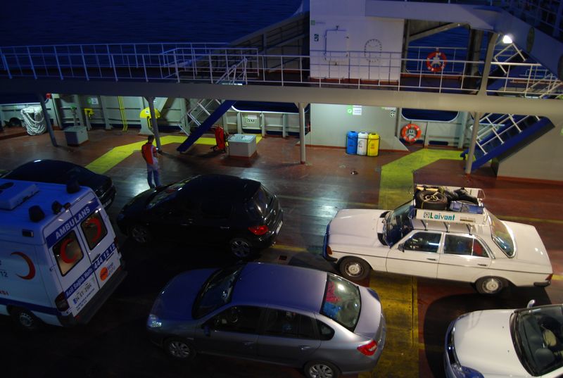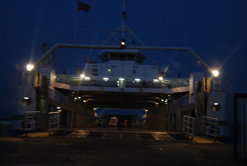 Wir durchfuhren eine schöne Landschaft und sahen immer wieder kurz das Meer, bis wir den schmalen Zipfel erreichten, von dem die Fähre nach Asien loslegte. Die kostete 23 TL und ging in fünf Minuten, wir waren gerade noch rechtzeitig da, um nicht warten zu müssen.