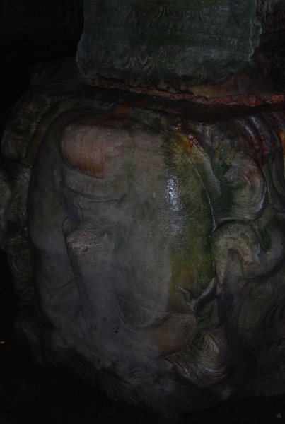 Ein umgedrehter Medusenkopf im Pfeiler, man hatte gerade nichts anderes zur Hand