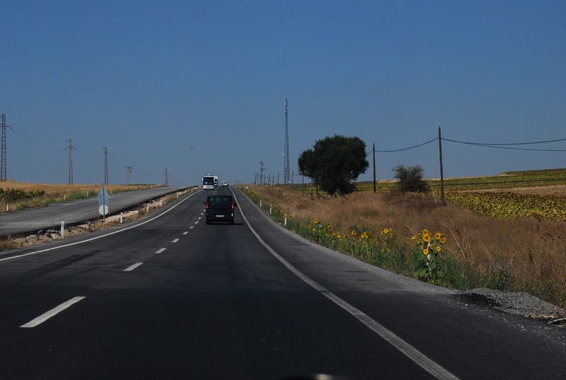 Wir folgten der Straße D100 und waren auch eine gute Stunde später noch nicht aus den Vororten Istanbuls draußen. Diese Metropole ist wirklich unglaublich groß. Bei Babaeski, mitten in Thrakien, bogen wir auf die D555 nach Norden ab. Bei Kırklareli brannte die Reservelampe schon wieder einige Zeit. Um im hügeligen Grenzland nicht unnötigerweise liegenzubleiben tankte ich sechs Liter des unverschämt teuren türkischen Sprits für 3,75 TL /L. Immerhin war ich somit meine letzten Lira los.