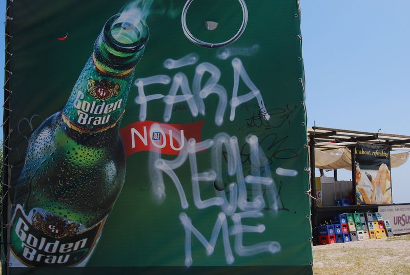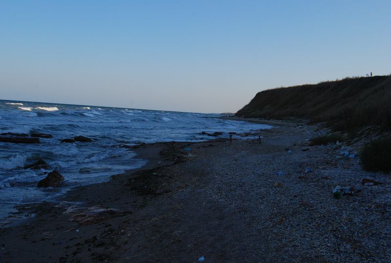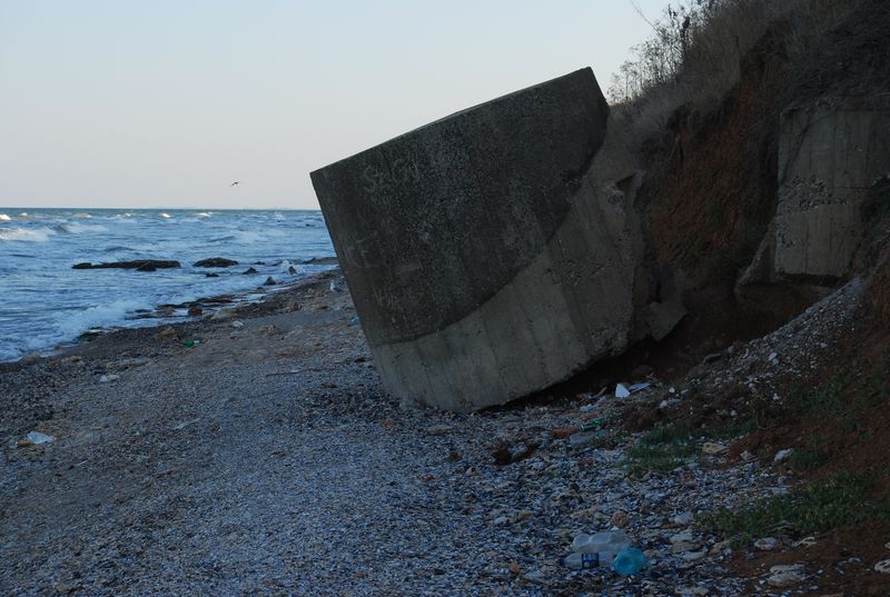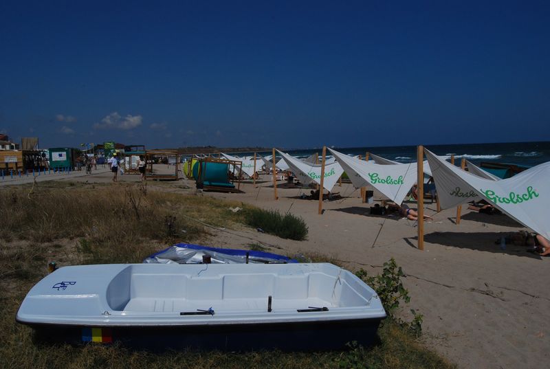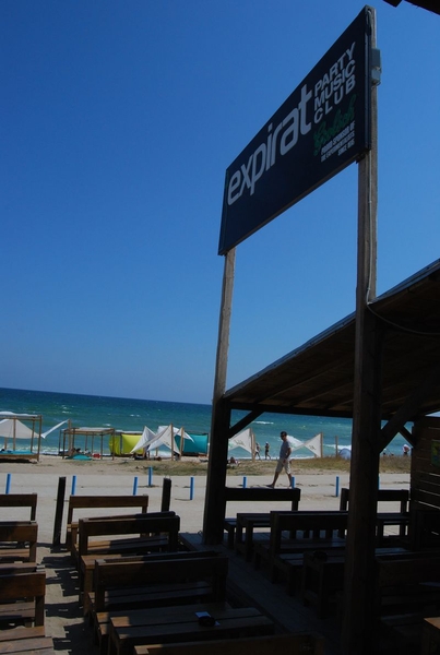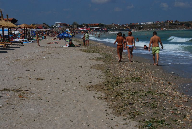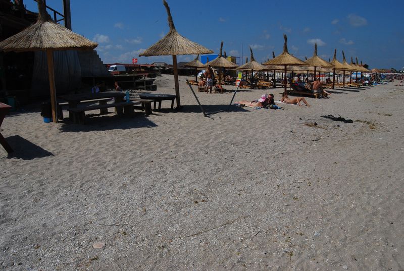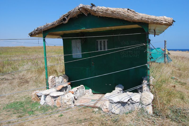 Wir wollten anschließend zur rumänisch-bulgarischen Grenze laufen, die nur wenig weiter als einen Kilometer südlich von Vama Veche verläuft und im Schwarzen Meer mündet. Wir blieben am Strand und warteten auf ein Zeichen, das die Grenze markiert. Der Weg zeugte mit seinem vielem Müll davon, daß hier schon viele grenznahe Partys gefeiert wurden. Irgendwann erreichten wir einen Betonbunker, vielleicht wurde er von Ceauşescu zur Abwehr eines möglichen Angriffs aufgestellt? Er ähnelte zumindest sehr den kommunistischen Bunkern in Albanien. Oder waren wir schon in Bulgarien und er gehörte mal zur deren Abwehrlinie? Keine Ahnung – wir wußten ja nicht, in welchem Land wir uns gerade befanden. Als wir dort standen sahen wir einen Mann in Uniform oben auf der Böschung stehen, der ständig hin und her lief und durch sein Fernglas das Meer beobachtete. Daher liefen wir vorsichtshalber nicht weiter, auch wenn es so aussah, als hätte er uns noch nicht bemerkt.