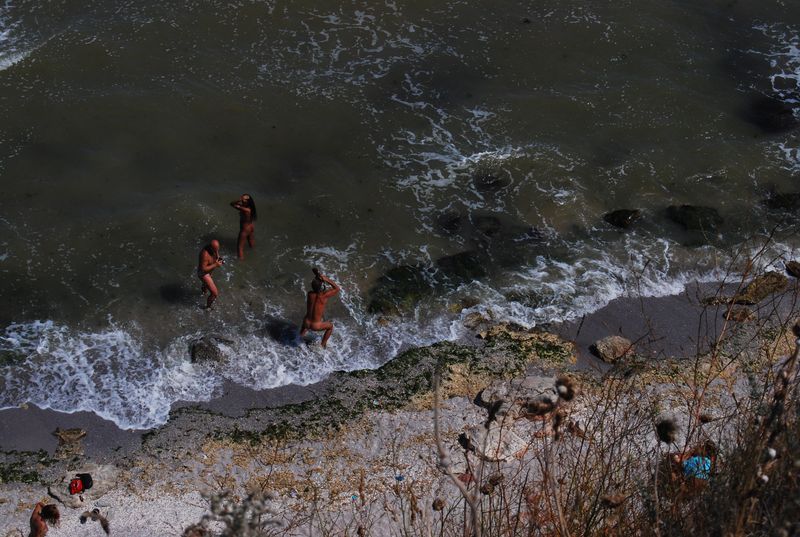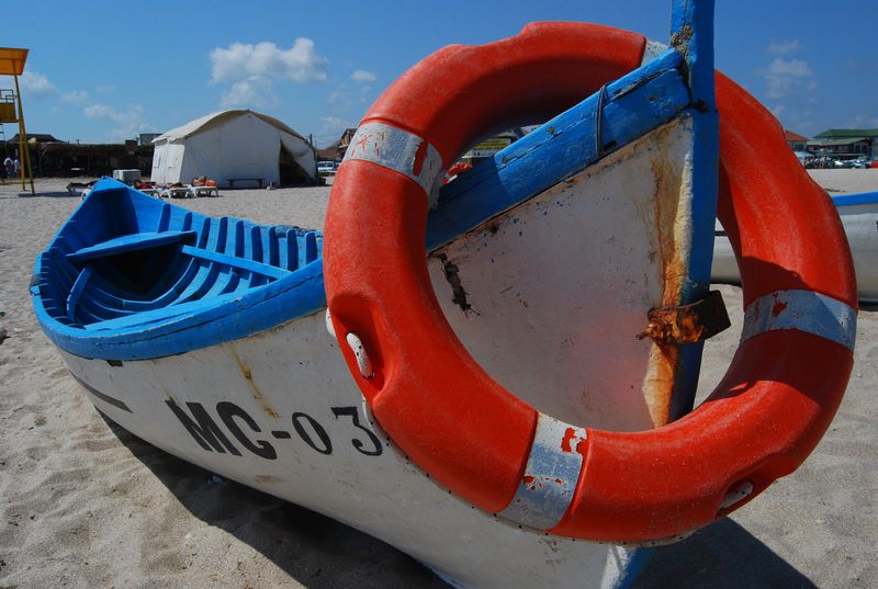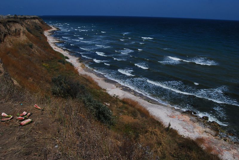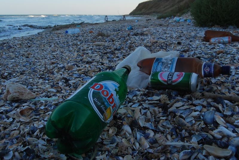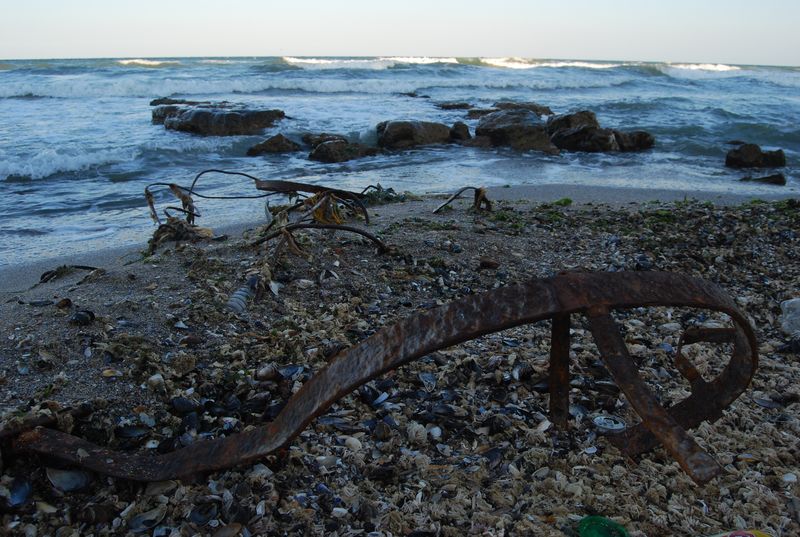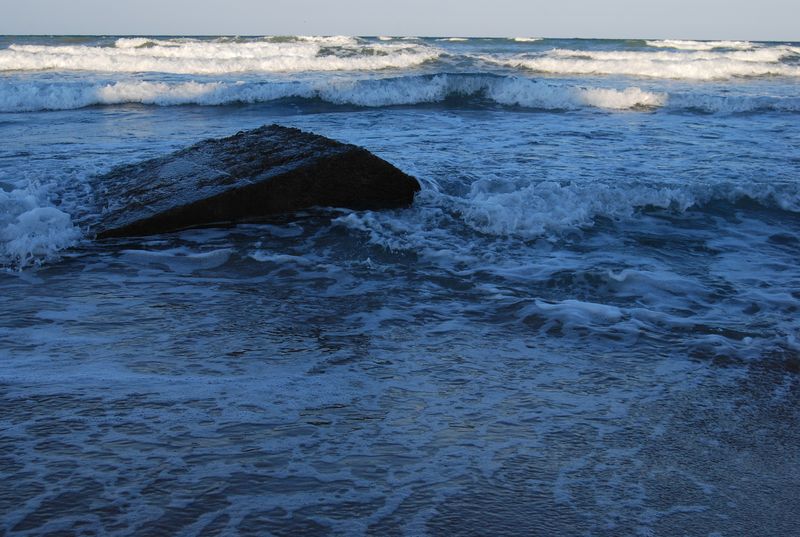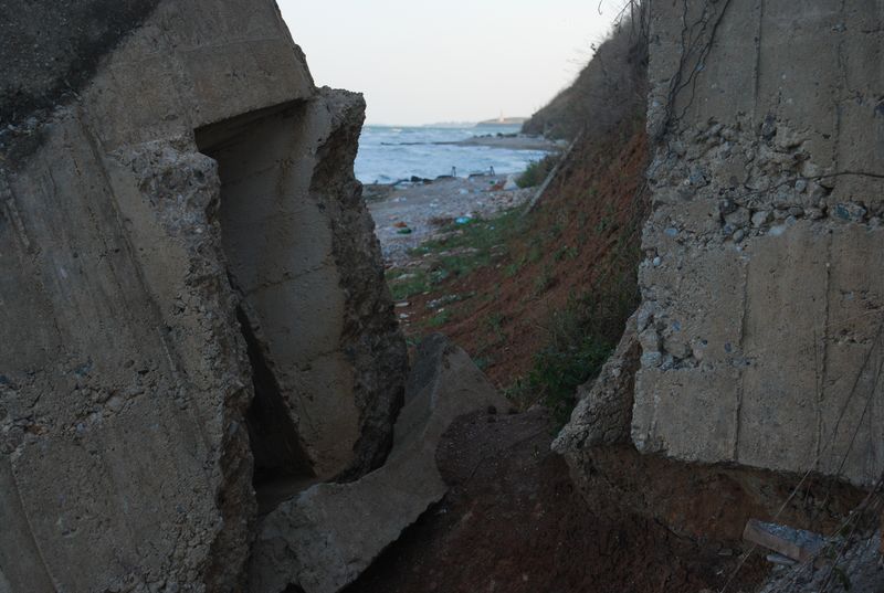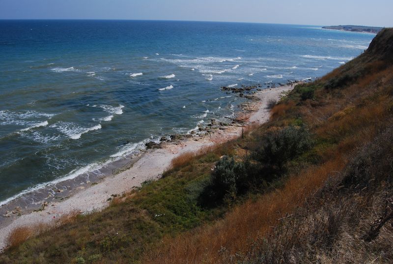 Wir wollten anschließend zur rumänisch-bulgarischen Grenze laufen, die nur wenig weiter als einen Kilometer südlich von Vama Veche verläuft und im Schwarzen Meer mündet. Wir blieben am Strand und warteten auf ein Zeichen, das die Grenze markiert. Der Weg zeugte mit seinem vielem Müll davon, daß hier schon viele grenznahe Partys gefeiert wurden. Irgendwann erreichten wir einen Betonbunker, vielleicht wurde er von Ceauşescu zur Abwehr eines möglichen Angriffs aufgestellt? Er ähnelte zumindest sehr den kommunistischen Bunkern in Albanien. Oder waren wir schon in Bulgarien und er gehörte mal zur deren Abwehrlinie? Keine Ahnung – wir wußten ja nicht, in welchem Land wir uns gerade befanden. Als wir dort standen sahen wir einen Mann in Uniform oben auf der Böschung stehen, der ständig hin und her lief und durch sein Fernglas das Meer beobachtete. Daher liefen wir vorsichtshalber nicht weiter, auch wenn es so aussah, als hätte er uns noch nicht bemerkt.