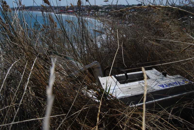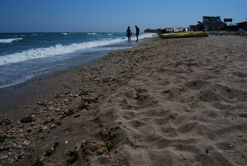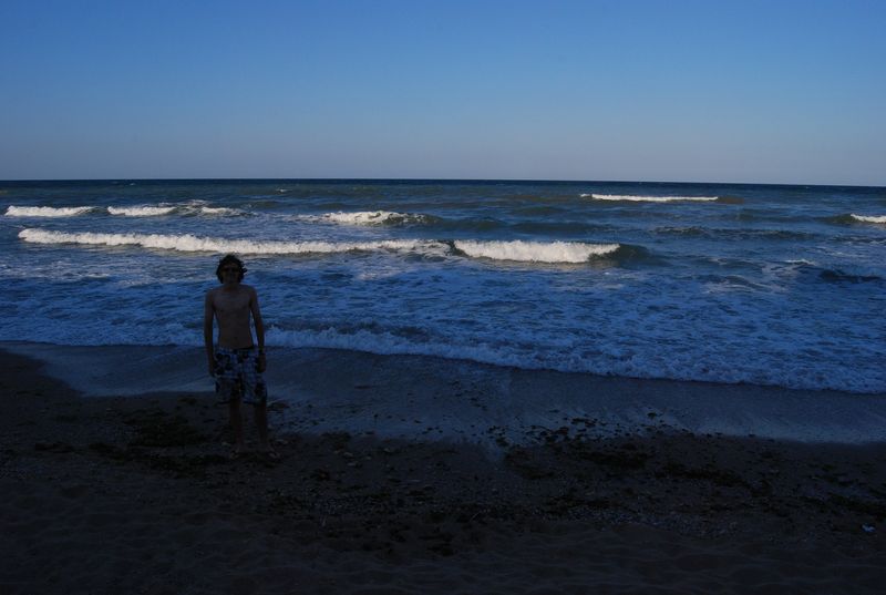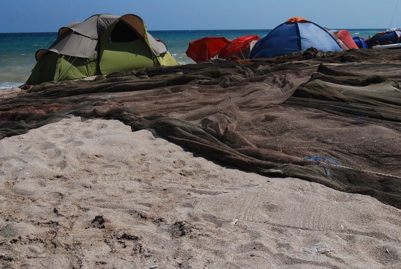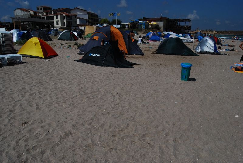 Wir holten uns etwas zu essen und zu trinken und liefen dann Taylans Strecke noch einmal ab, nach Norden aus dem Ort heraus. Es kamen noch viele Kneipen und Gaststätten, anschließend ein FKK-Strand und dahinter eine weitere Wildcampingfläche. Dort übernachteten Leute aus fast allen europäischen Ländern. Auch Finnen und Deutsche haben wir dort gesehen. Zumindest deren Autos. Erst als der Feldweg immer schmaler wurde und am Horizont nichts mehr zu sehen war, liefen wir wieder zurück.